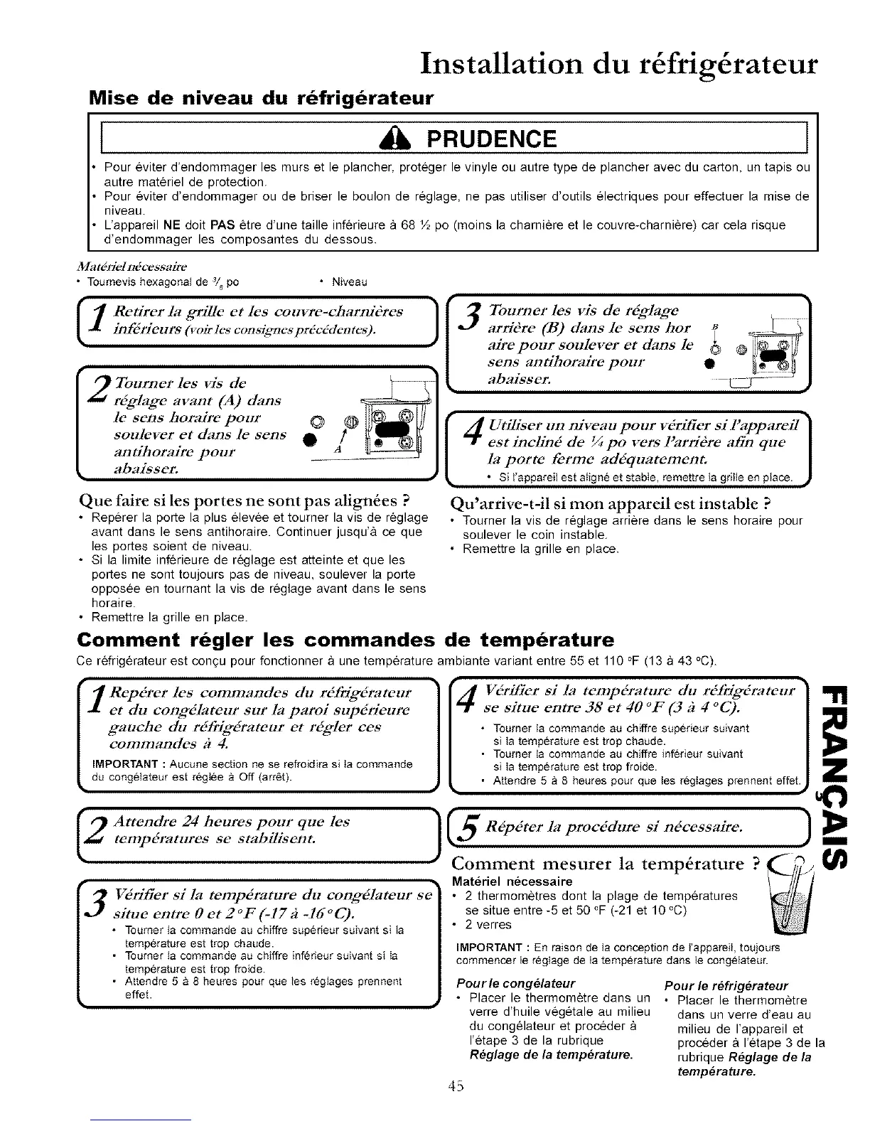 Mise de niveau du refrigerateur