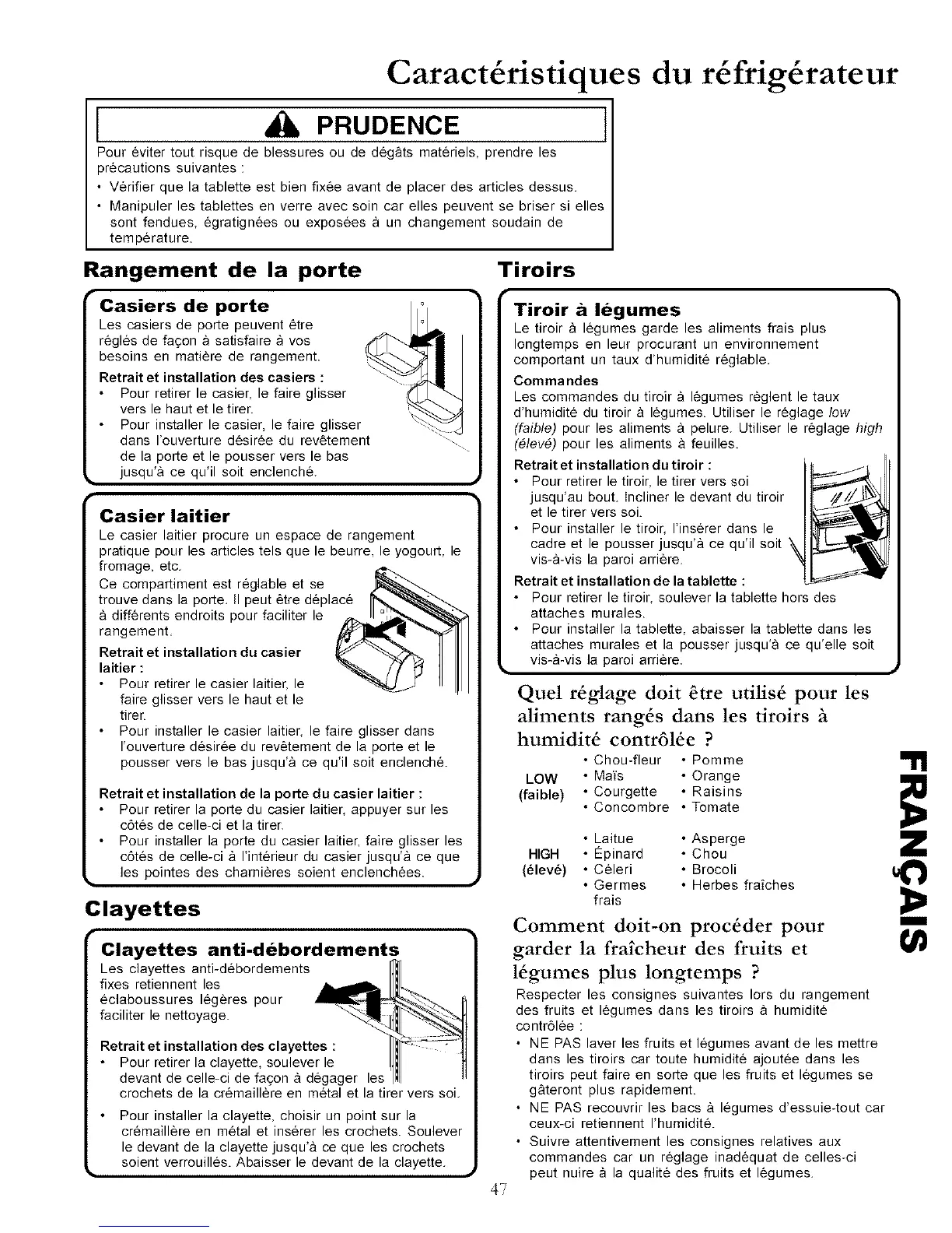 d'humidite du tiroir e legumes Utiliser le reglage low
