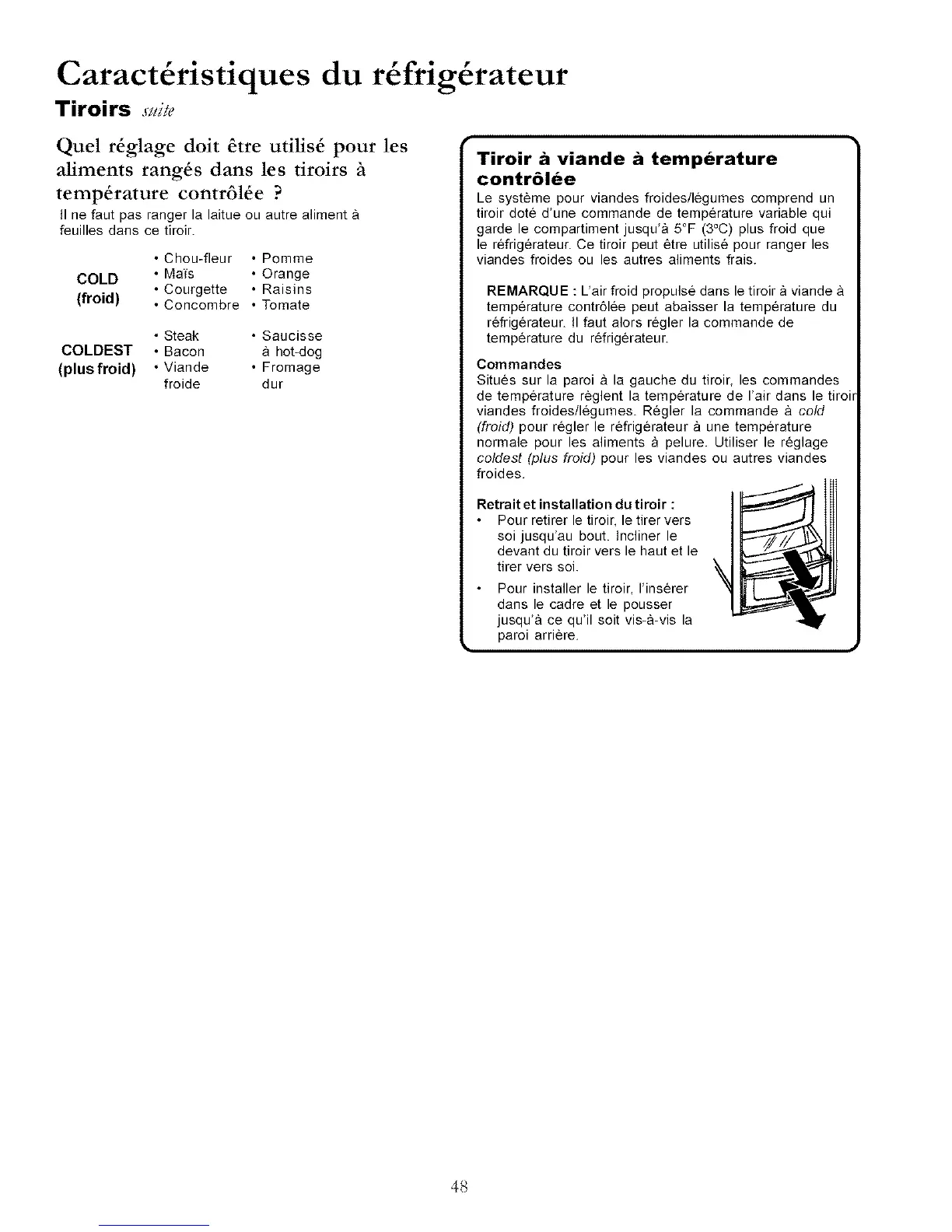 REMARQUE : L'air froid propulse dans le tiroir a viande &