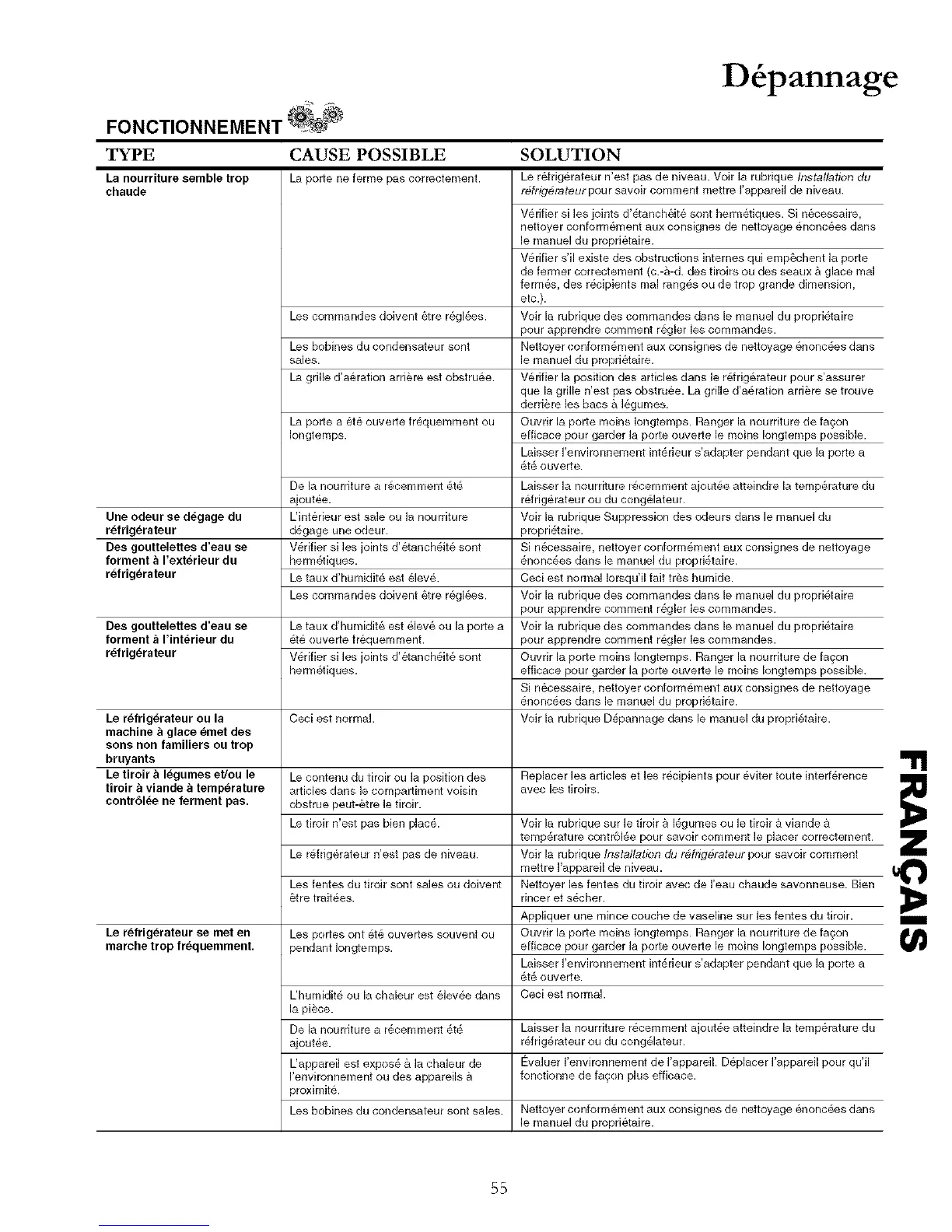 Voir la rubrique D_pannage dans le manuel du propridtaire.Le refrigerateur ou la Ceci est normal.