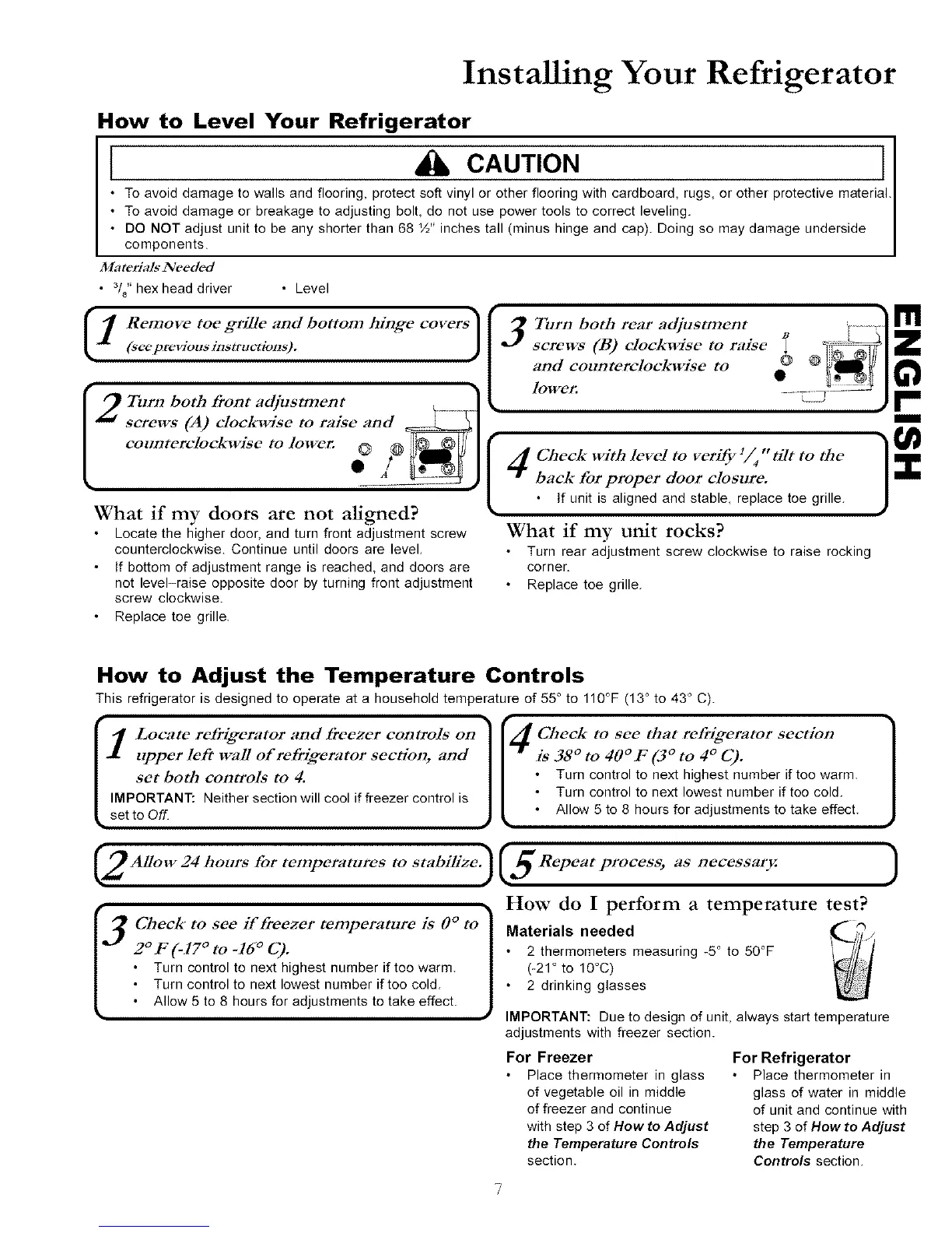 / IMPORTANT: Neither section will cool if freezer control is L • Allow 5 to 8 hours for adjustments to take effect