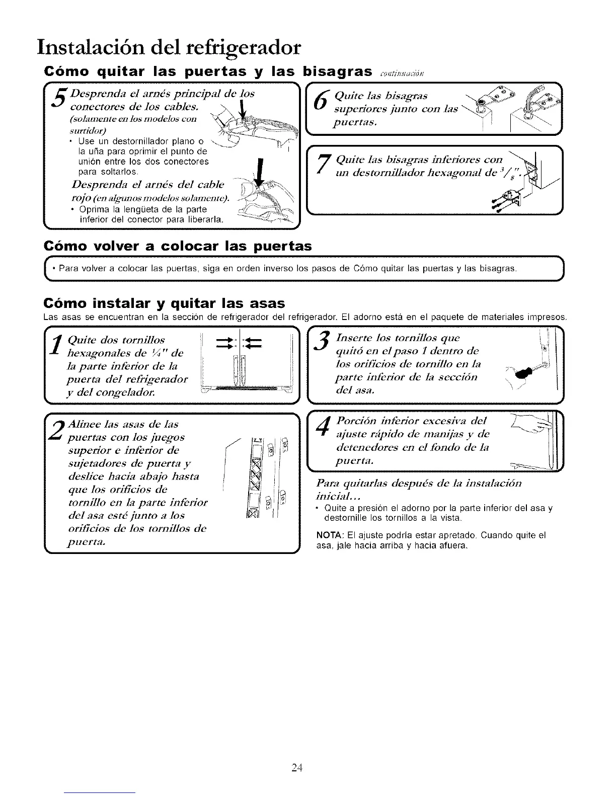 • Para volver a colocar las puertas, siga en orden inverso los pasos de Como quitar las puertas y las bisagras )