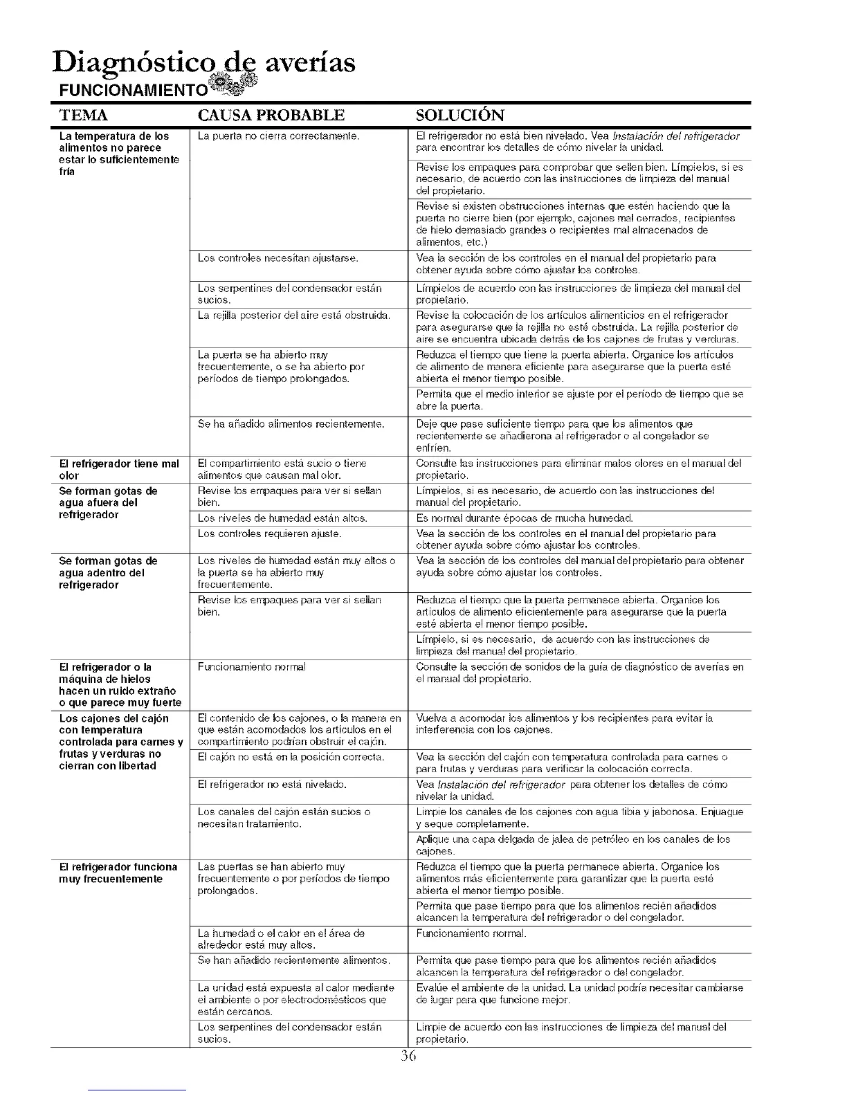 Los controles requieren ajuste. Vea la secci6n de los controles en el manual del propietario para