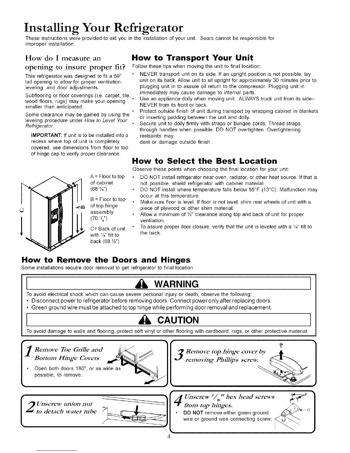 These instructions were provided to aid you in the installation of your unit. Sears cannot be responsible for