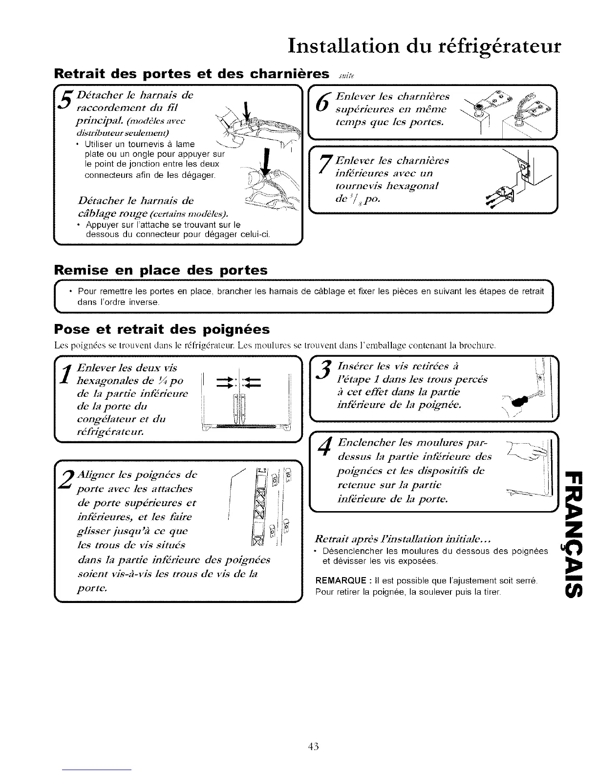 Les poign_Ses se Irouvenl darts le r_Sfrig_Srateur. Les moulures se Irotlveat dang l'emballage centenant la brochure.