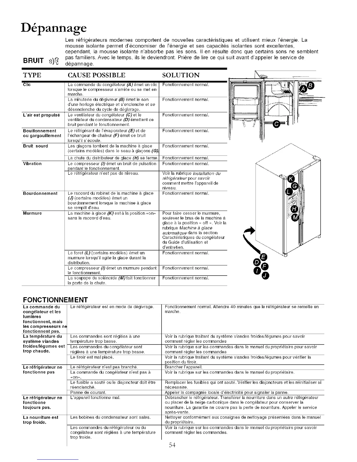 Bruit sourd Les gla£ons tombent de la machine & glace Fonctionnement normal.