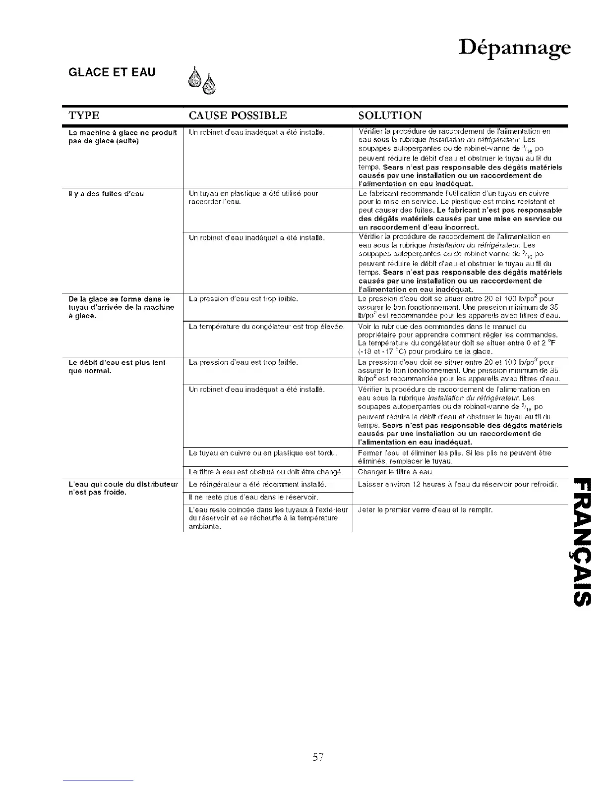 temps. Sears n'est pas responsable des d_g&ts matdriels