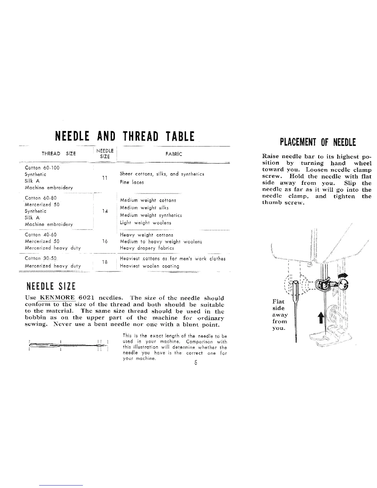 Use KENMORE 6021 necdies. The size o[ the needle should