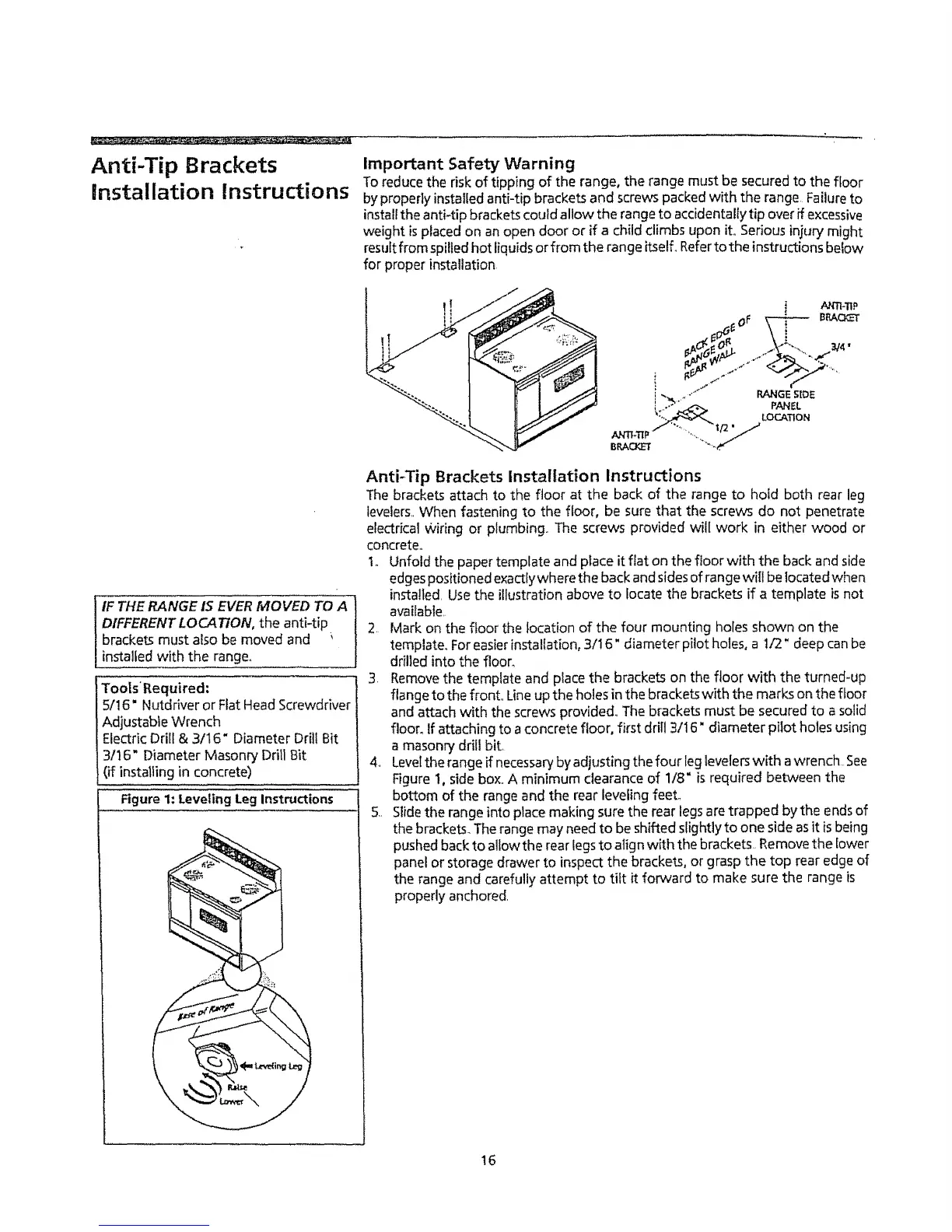 installthe anti-tip bracketscould allow the range to accidentally tip over ff excessive