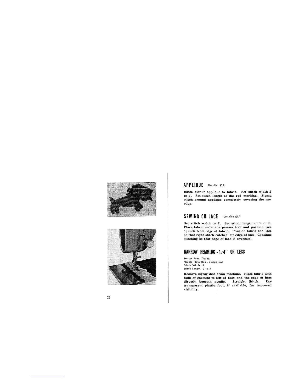 Remove zigzag disc from machine. Place fabric with