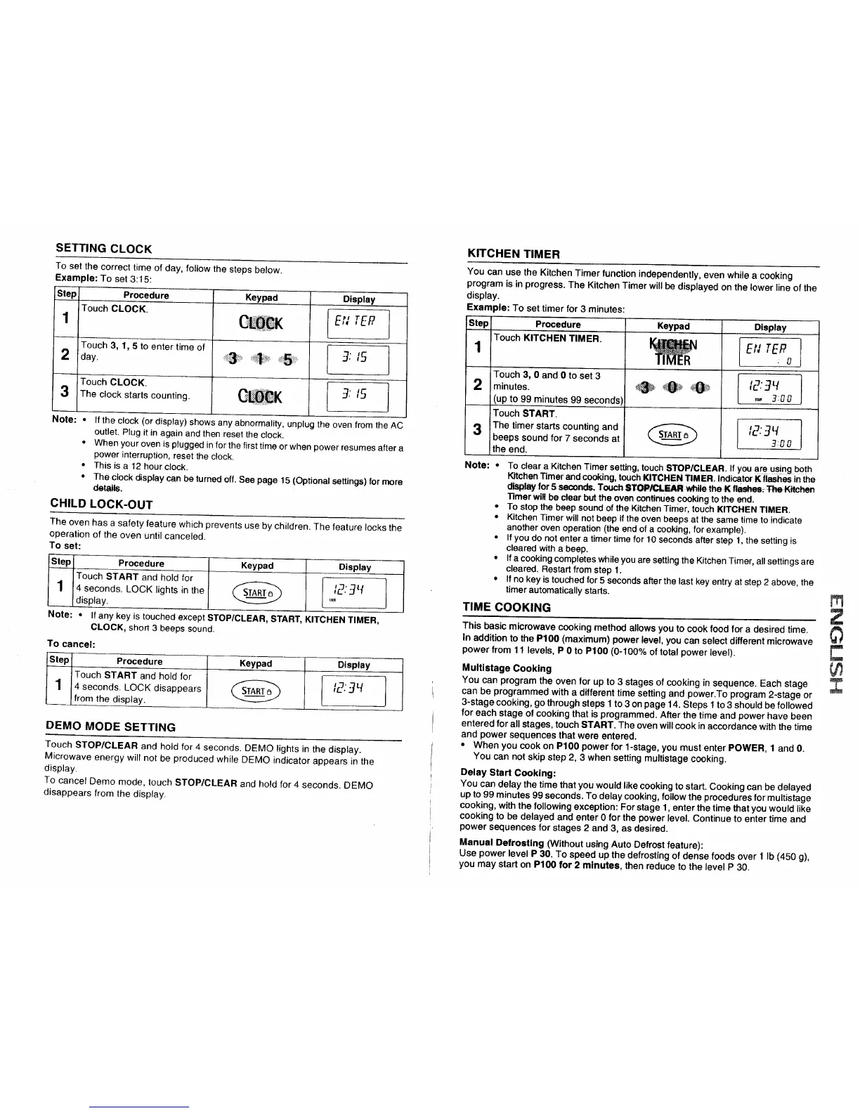 Note: • If any key is touched except STOP/CLEAR, START, KITCHEN TIMER,