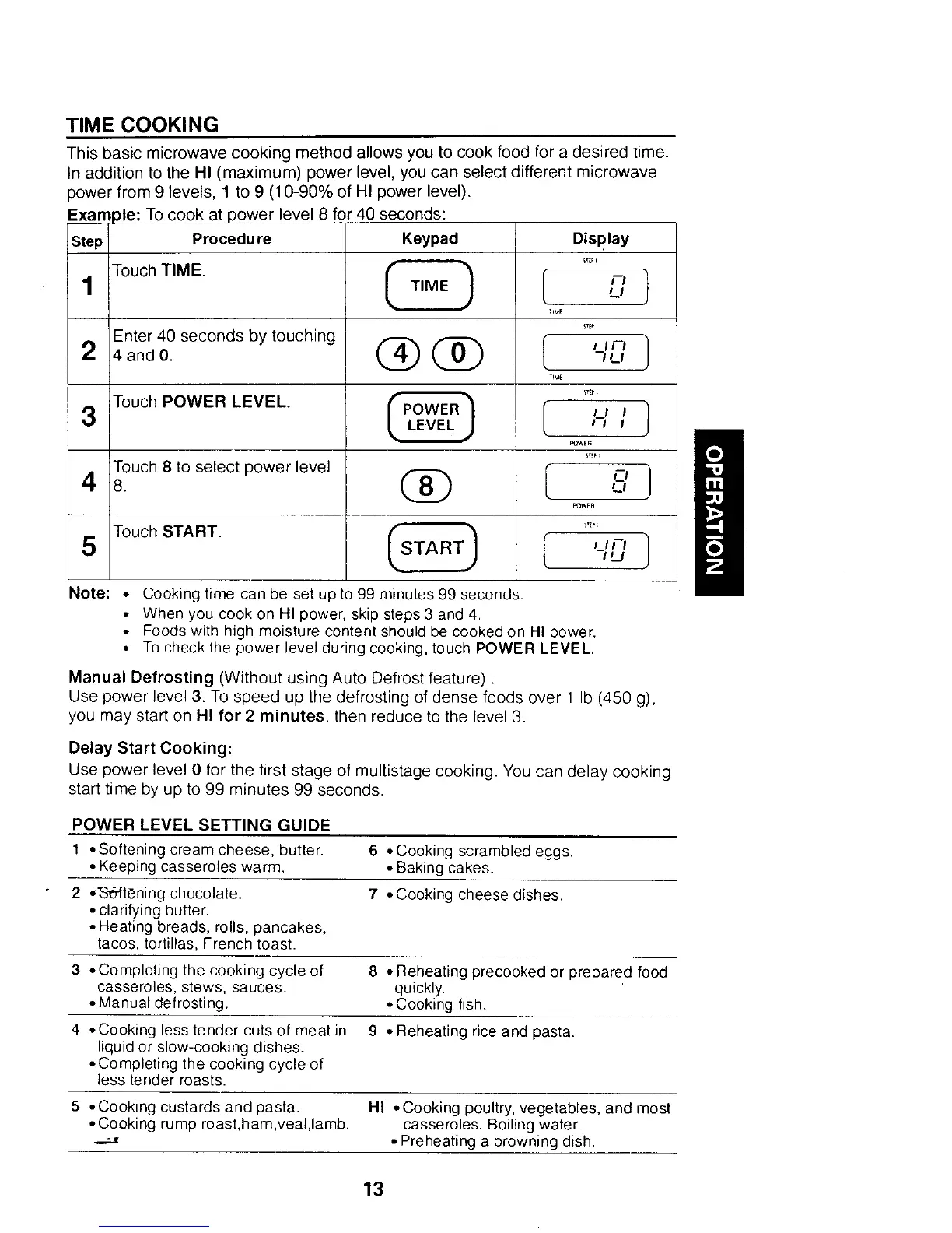 Use power level 0 for the first stage of multistage cooking. You can delay cooking