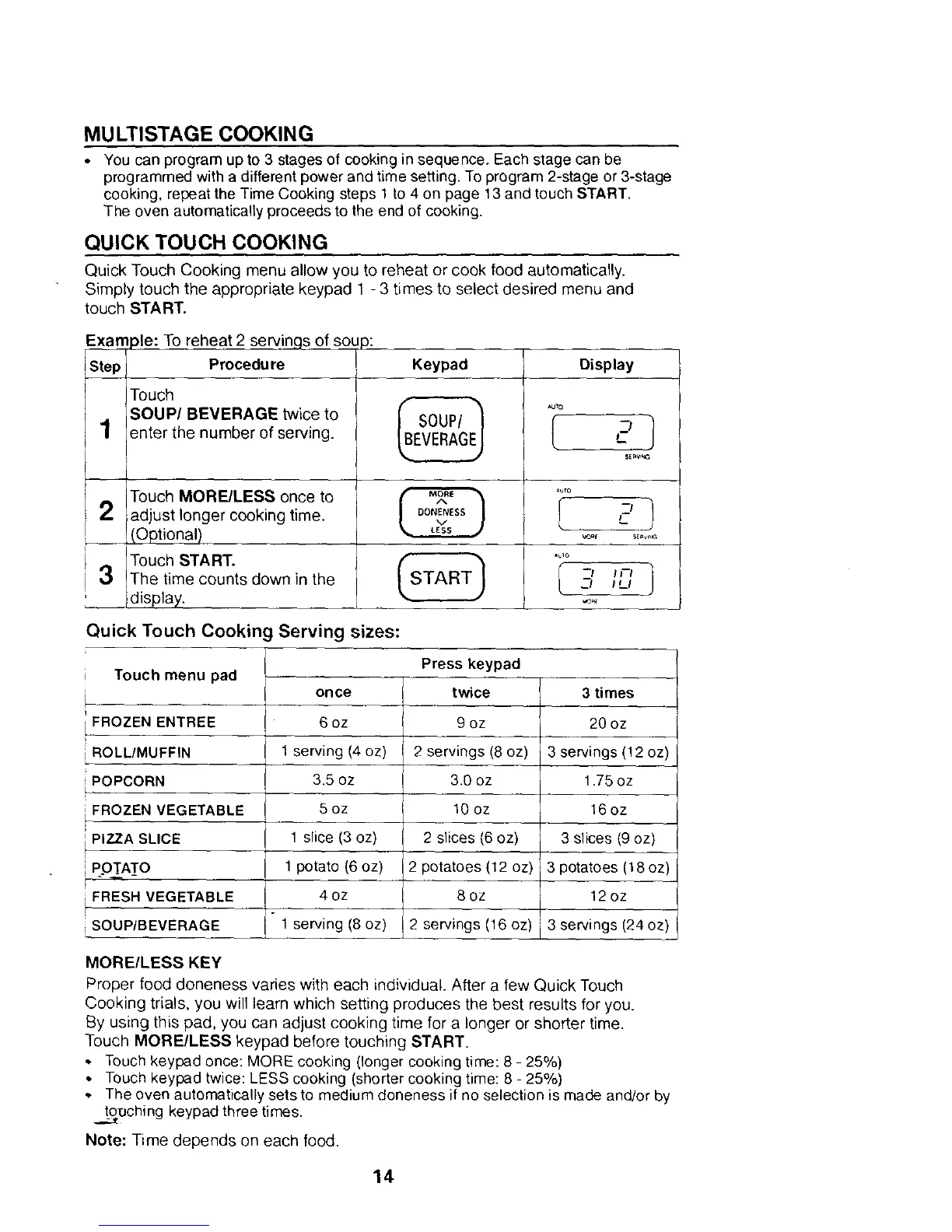 • Touch keypad once: MORE cooking (longer cooking time: 8 - 25%)