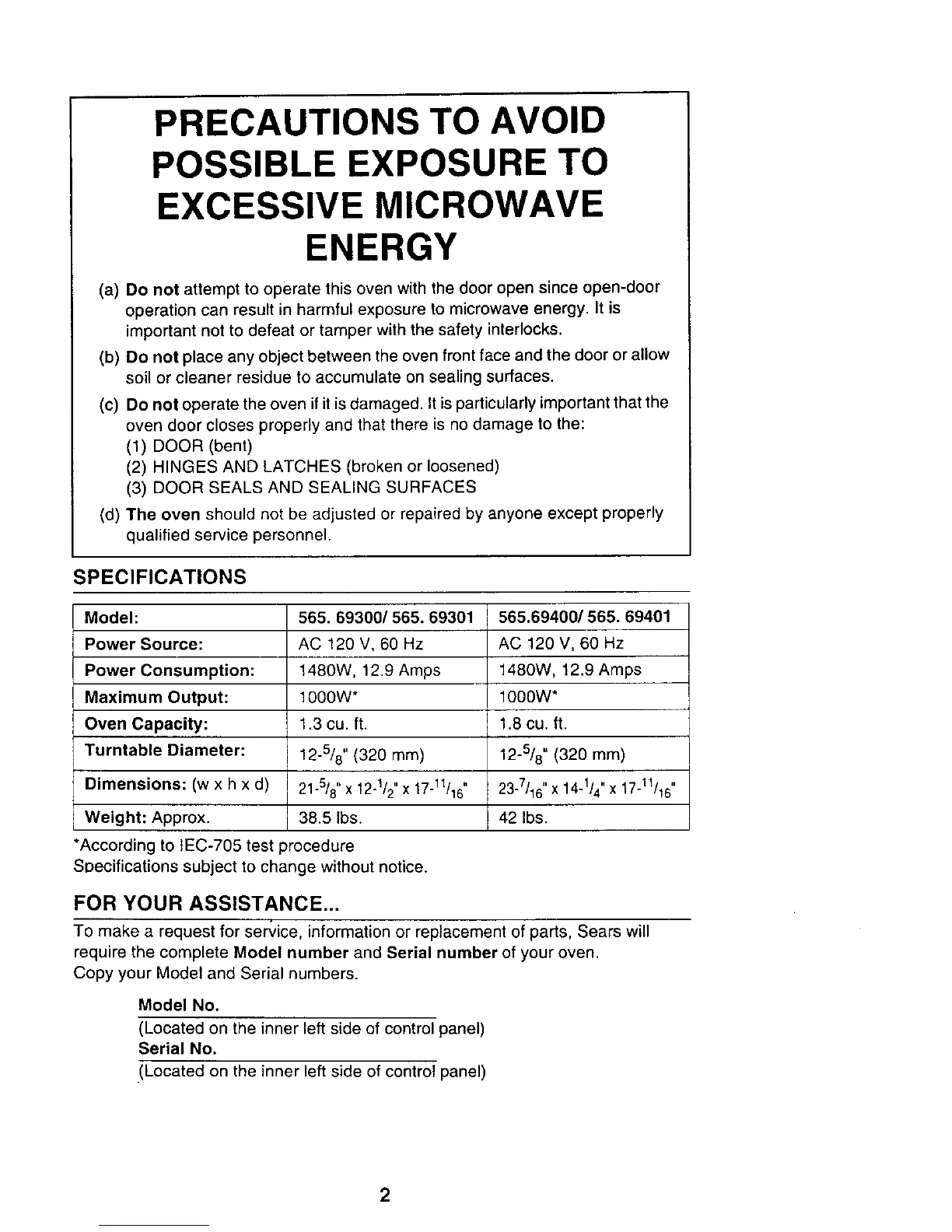 require the complete Model number and Serial number of your oven.