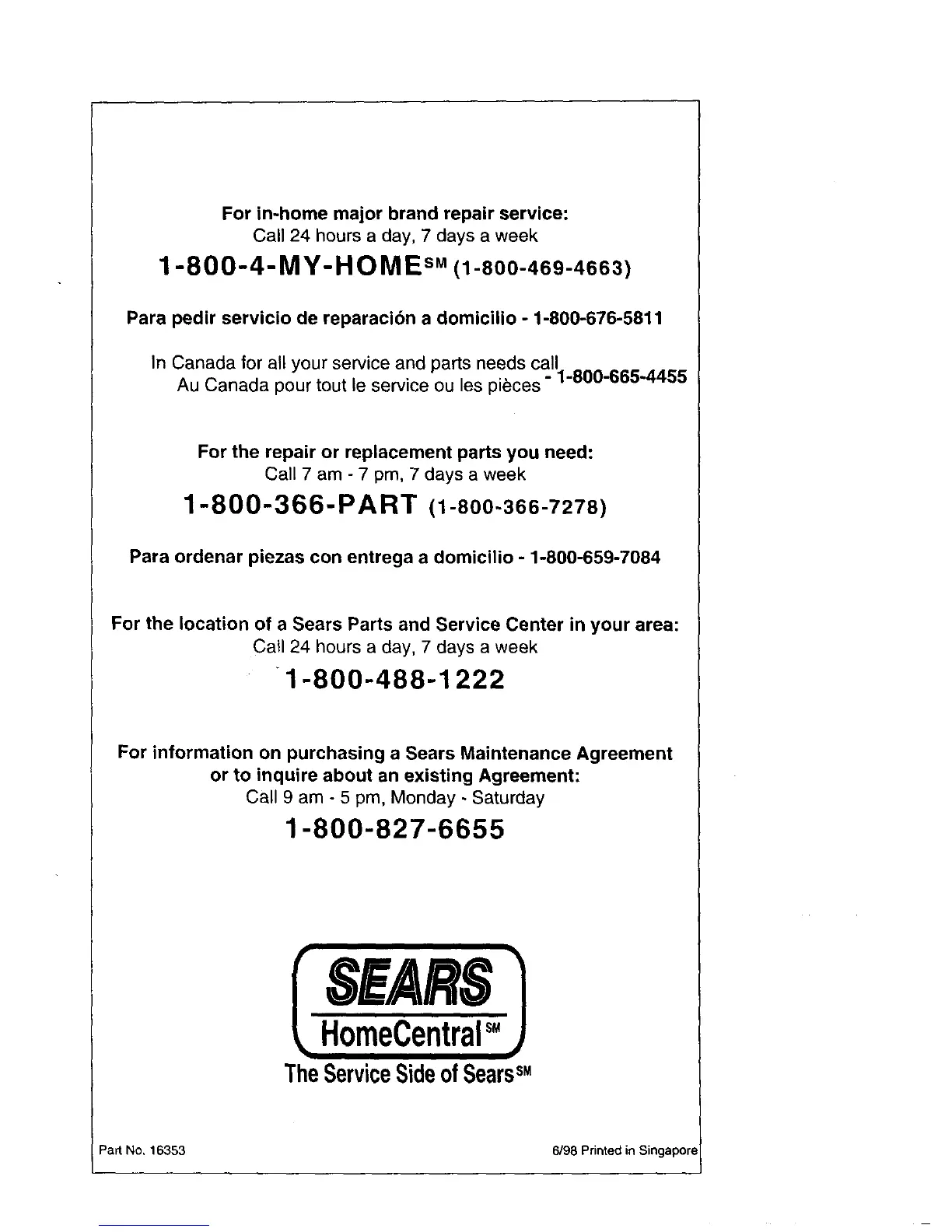 Part No, 16353 6/98 Printed in Singapore