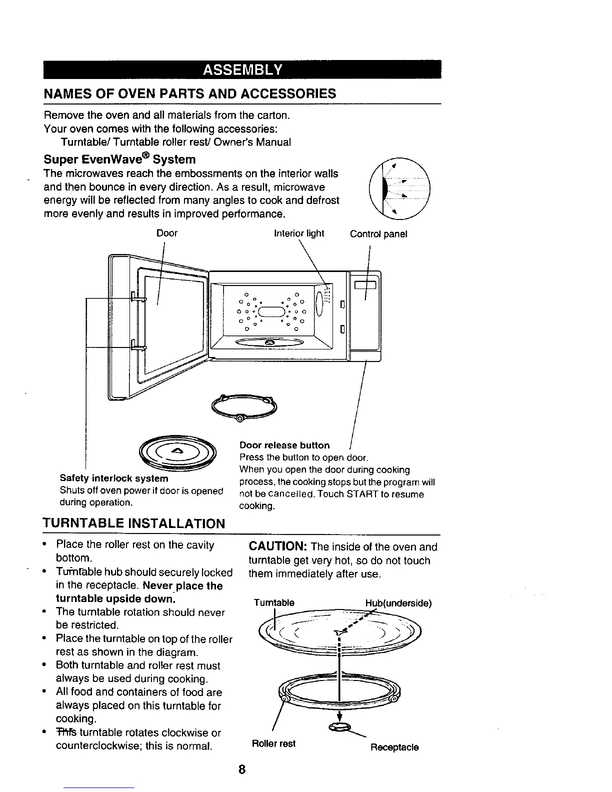 NAMES OF OVEN PARTS AND ACCESSORIES