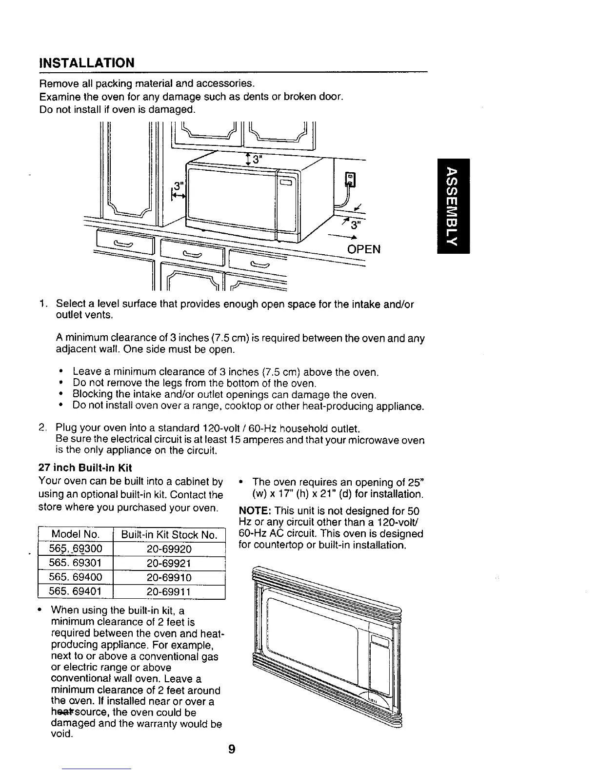 • Leave a minimum clearance of 3 inches (7.5 cm) above the oven.