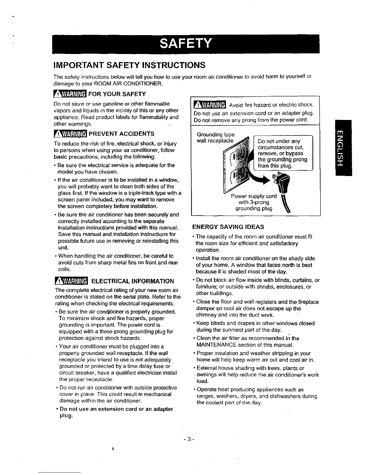 The safety instructions below will tell you how to use your room air conditioner to avoid harm to yourself or