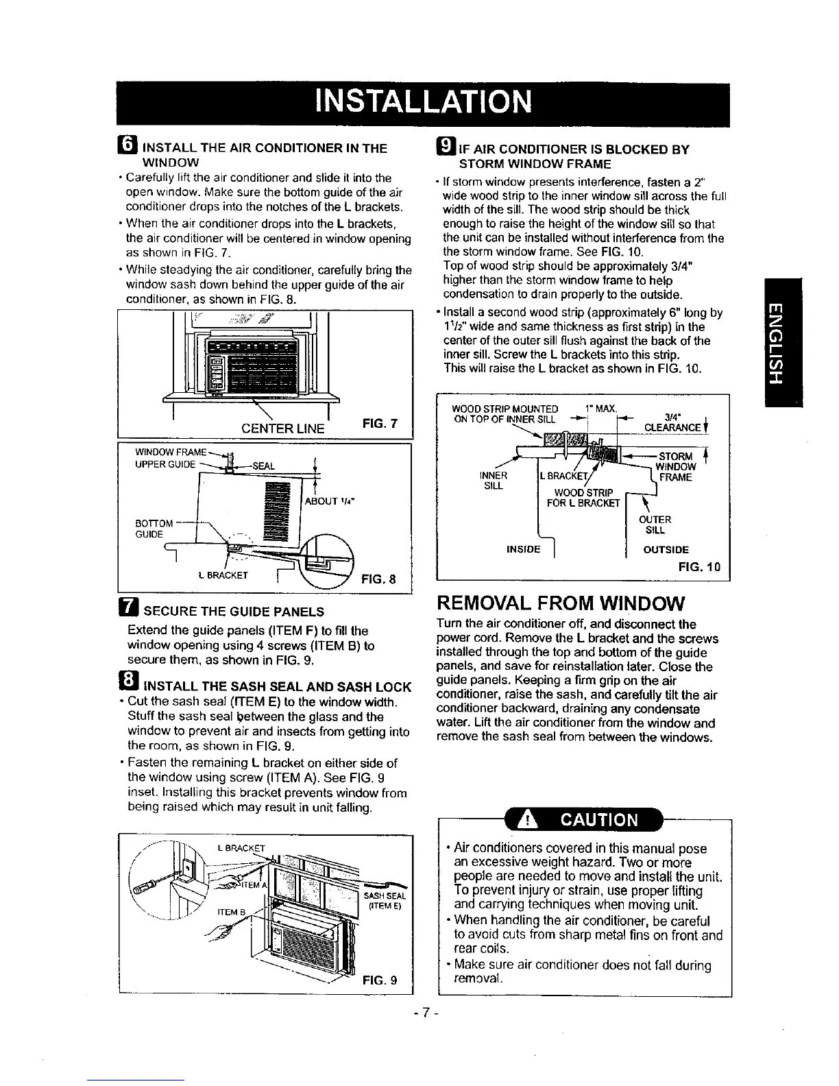 the window using screw (ITEM A). See FIG. 9