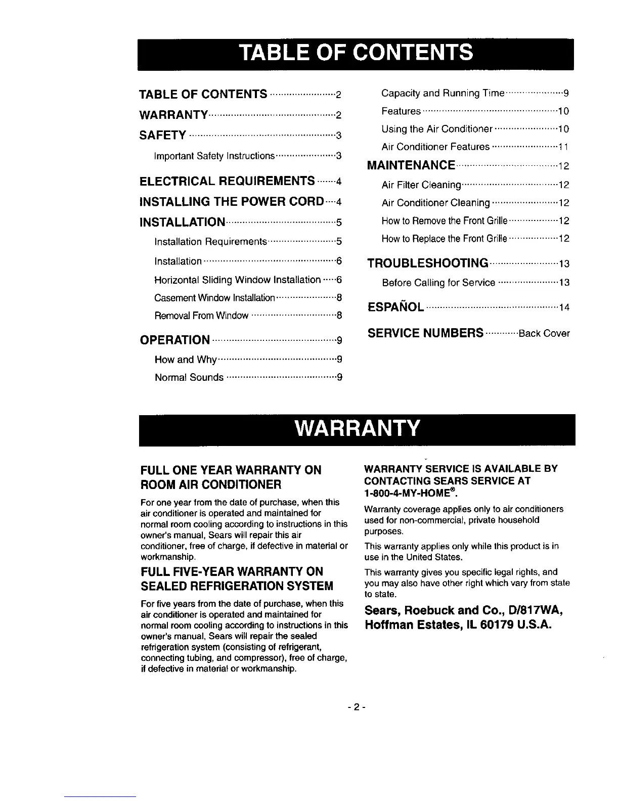 owner's manual, Sears will repair this air