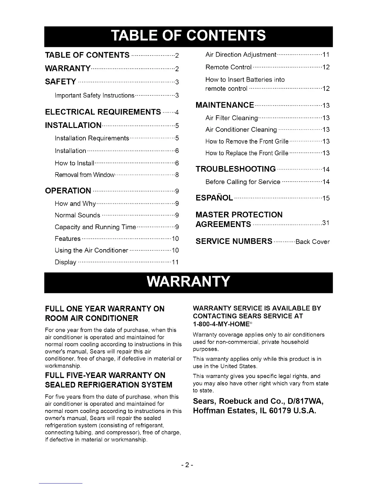 owner's manual, Sears will repair this air