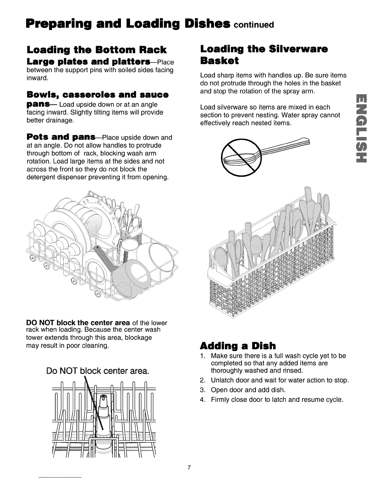 Load sharp items with handles up. Be sure items