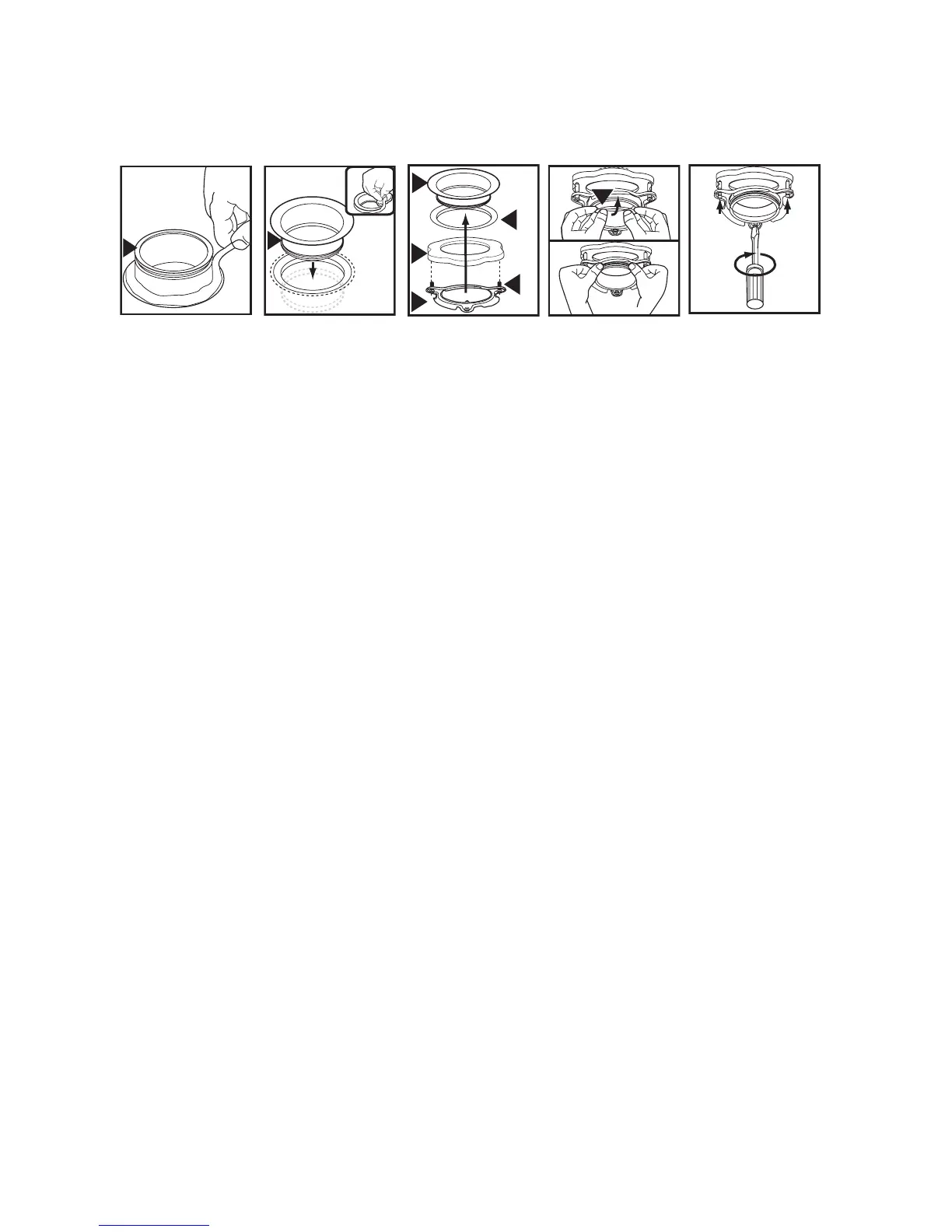 1. Disassemble the mounting assembly from the disposer by turning the lower