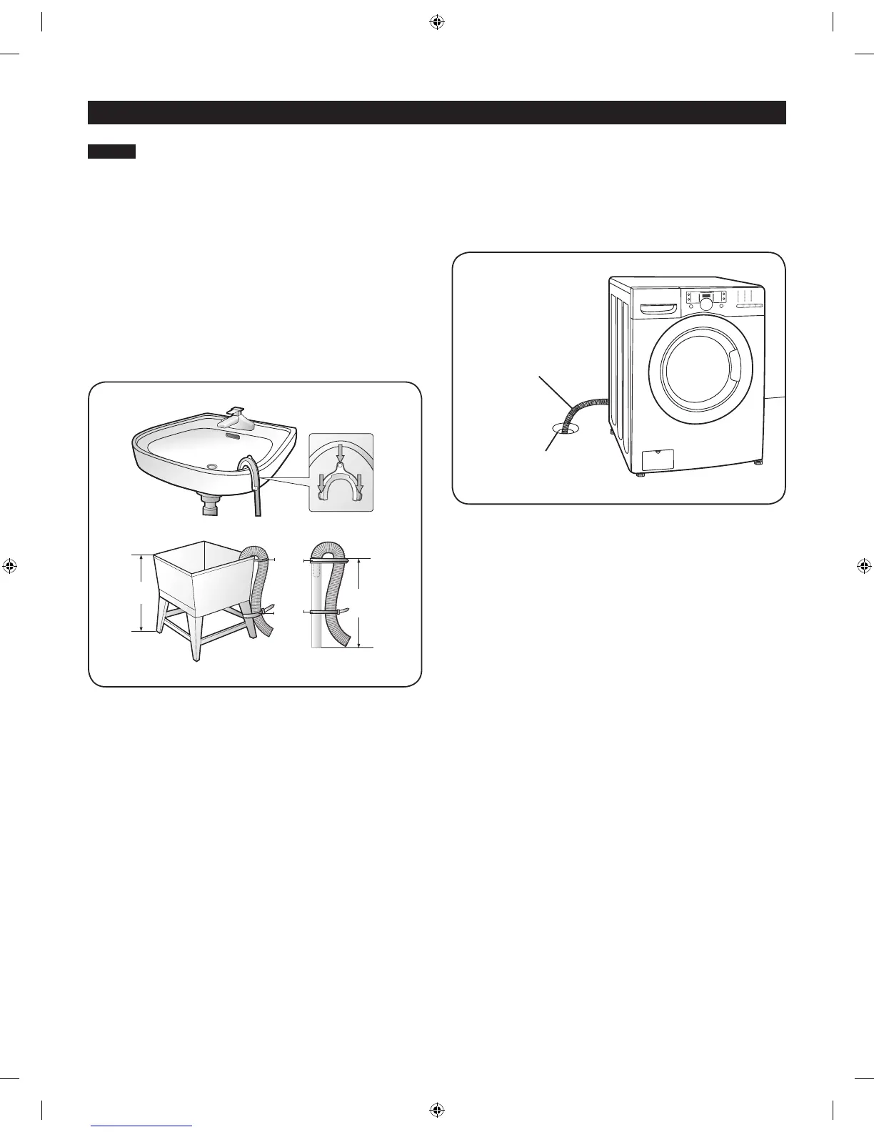 elevated to at least 18 in or 46 cm, the drain hose must be