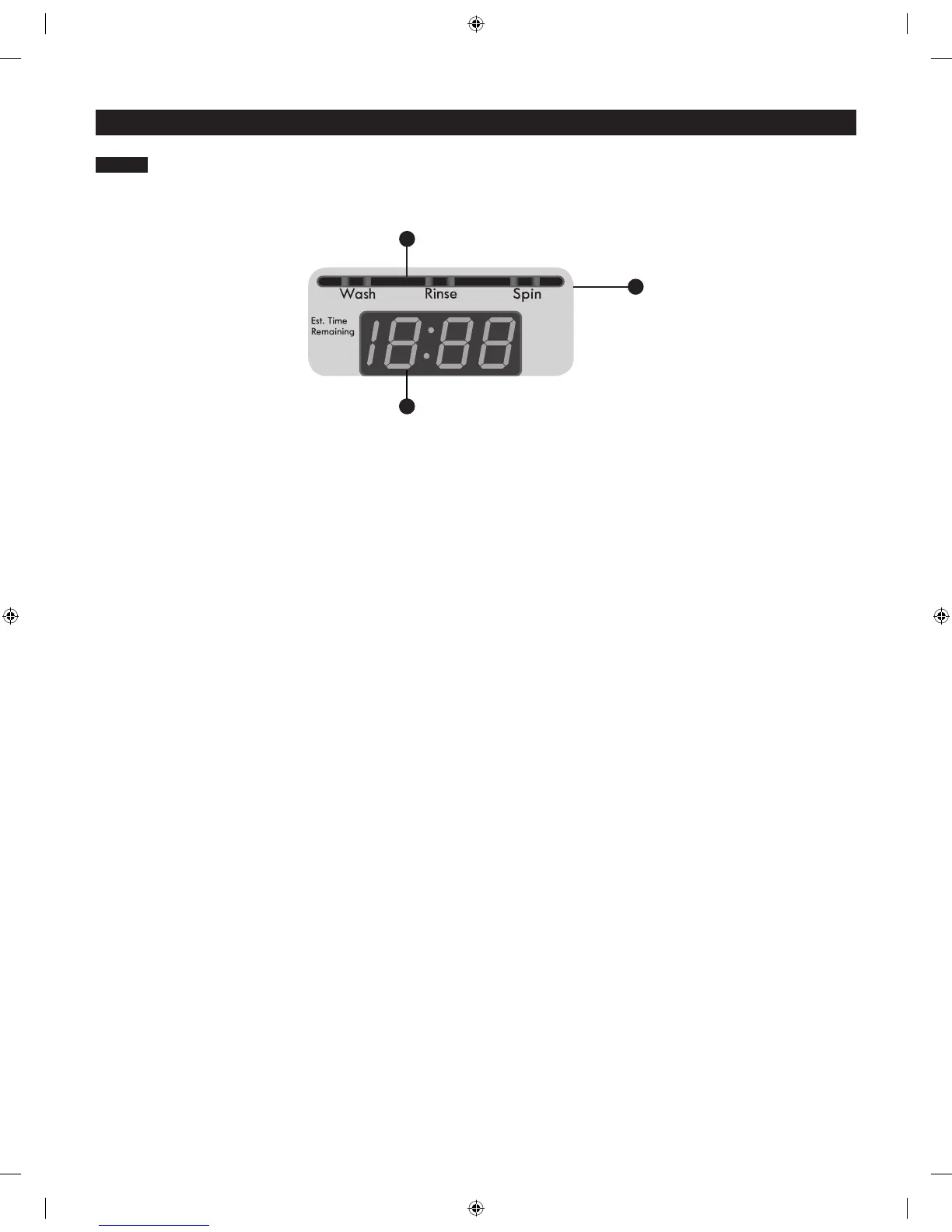 L'affichage de l'heure et de l'état indique une estimation du temps restant, la progression du programme et l'état de verrouillage de l'hublot.