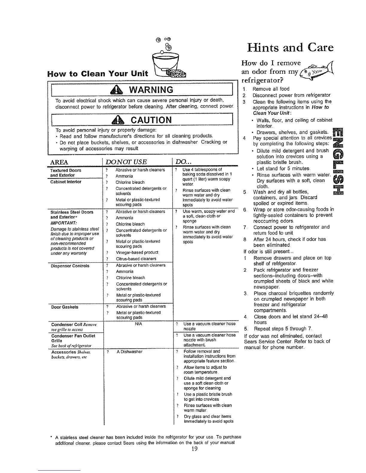 " A stainless steel cleaner has been included inside the refrigerator for your use To purchase