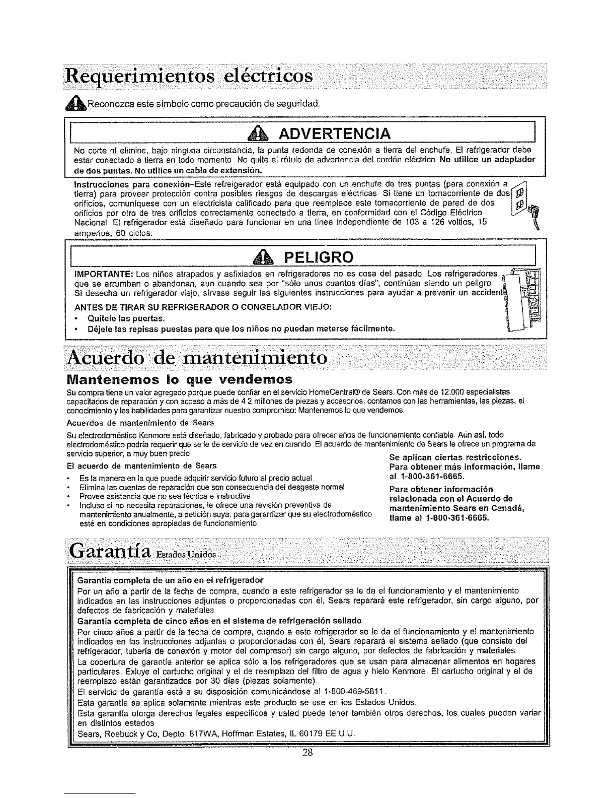 indicados en tas instrucciones adjuntas o proporcionadas con 81, Sears reparar_ este refrigerador, sin cargo alguno, pot