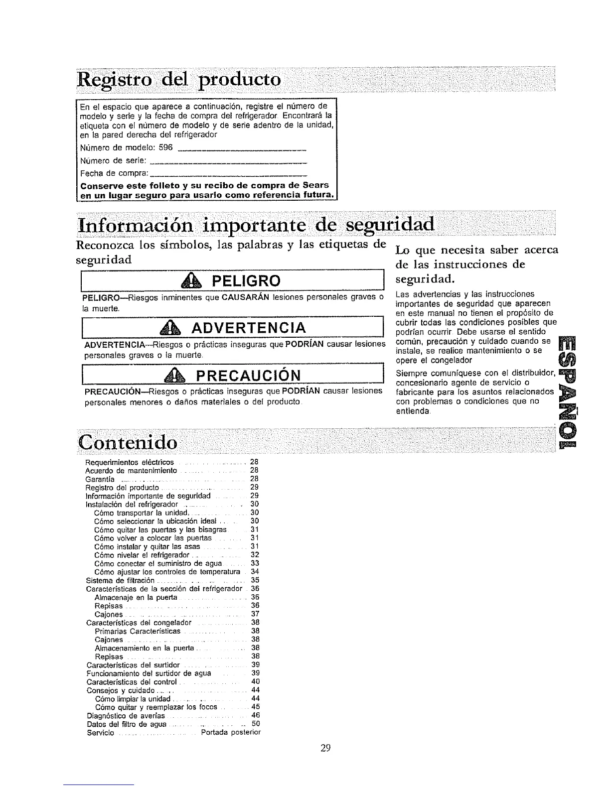 lnformaci_n [mportante de seguddad ......... 29