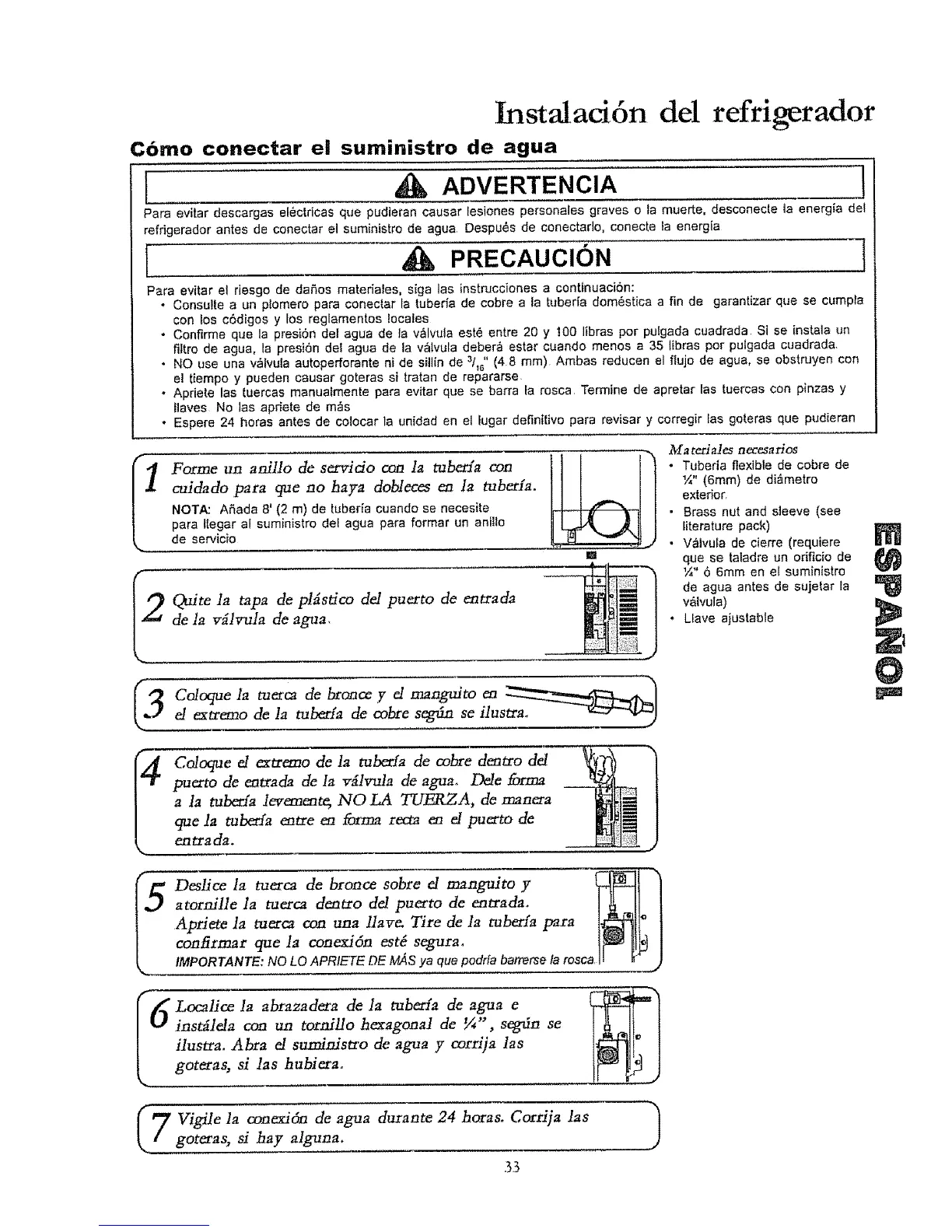• Consutte a un plomero para conectar la tuberia de cobre a la tuber[a dom6stica a fin de garantizar que se cumpfa