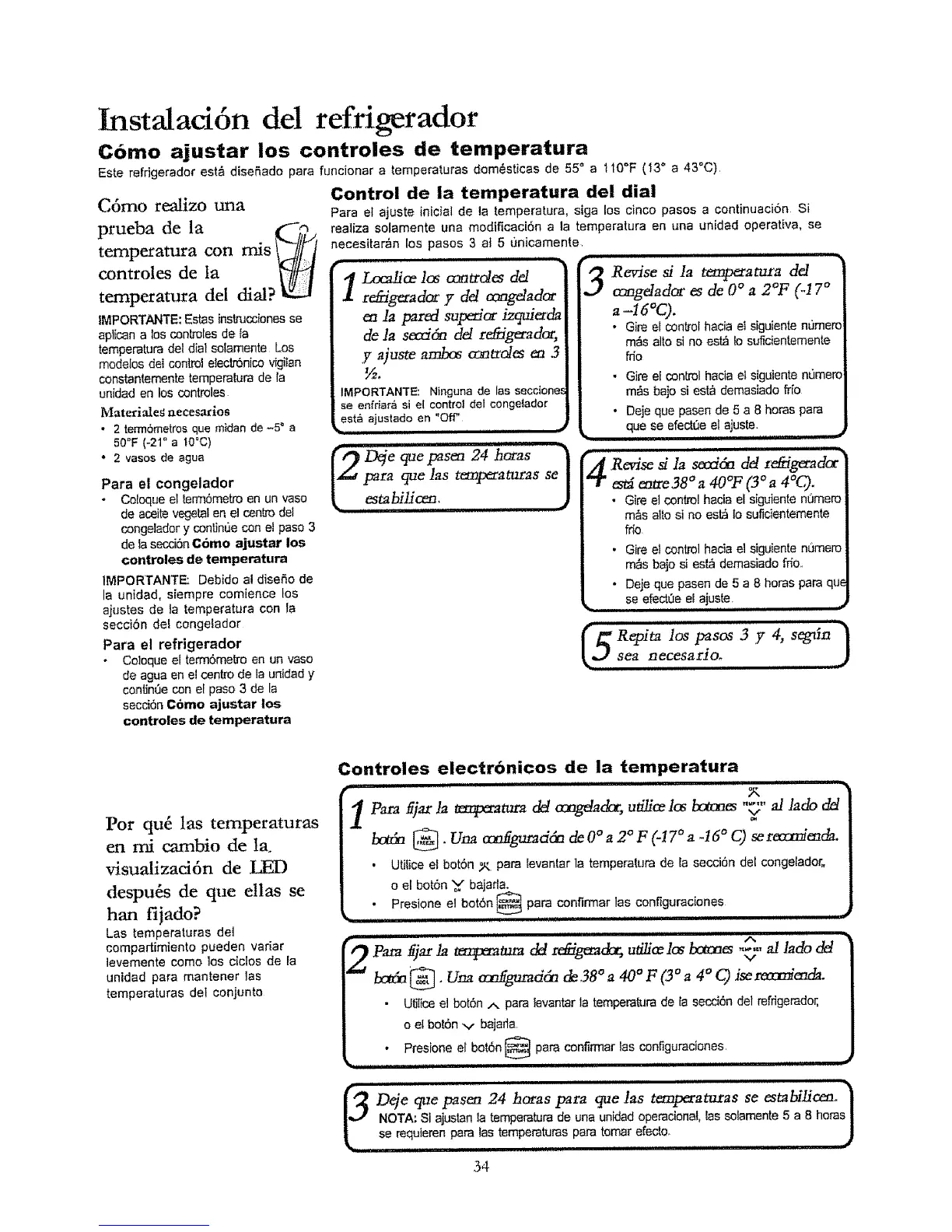 Para et ajuste inic}al de la temperatura, siga los cinco pasos a continuaci6n Si
