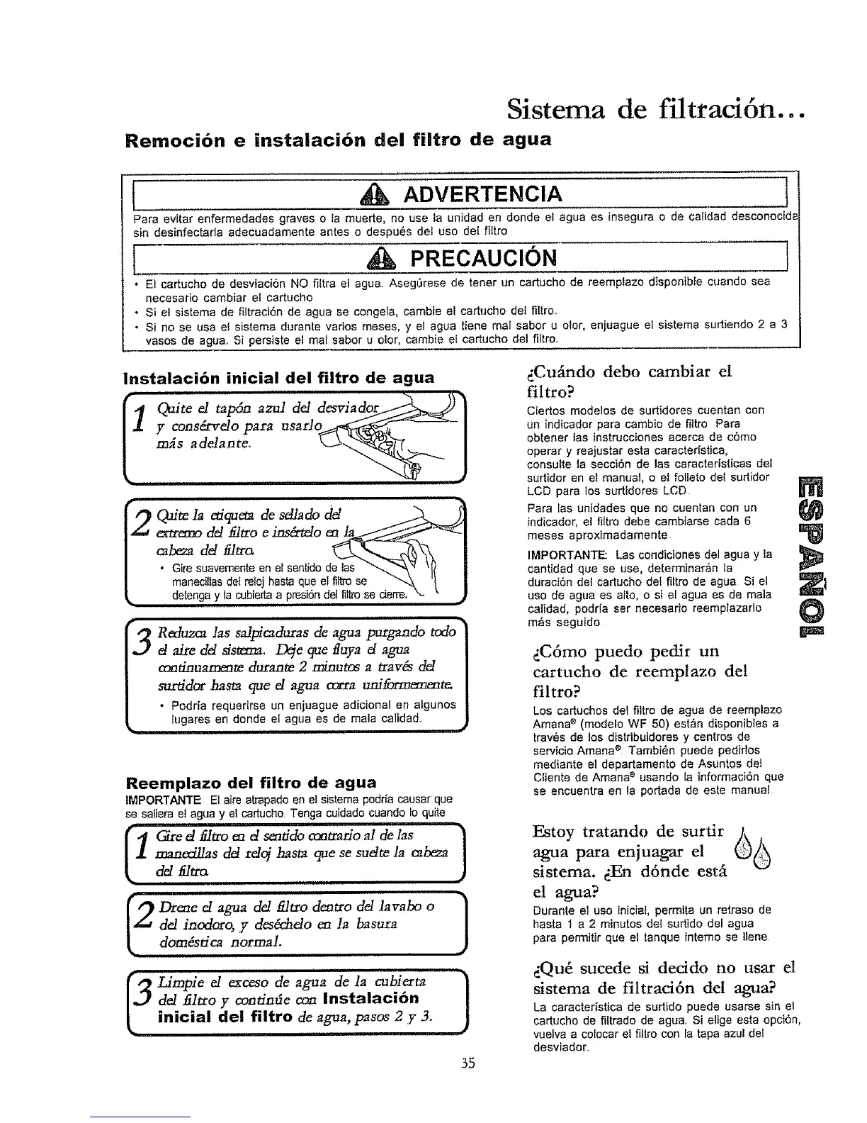 Remocion e instalaci6n de! filtro de agua