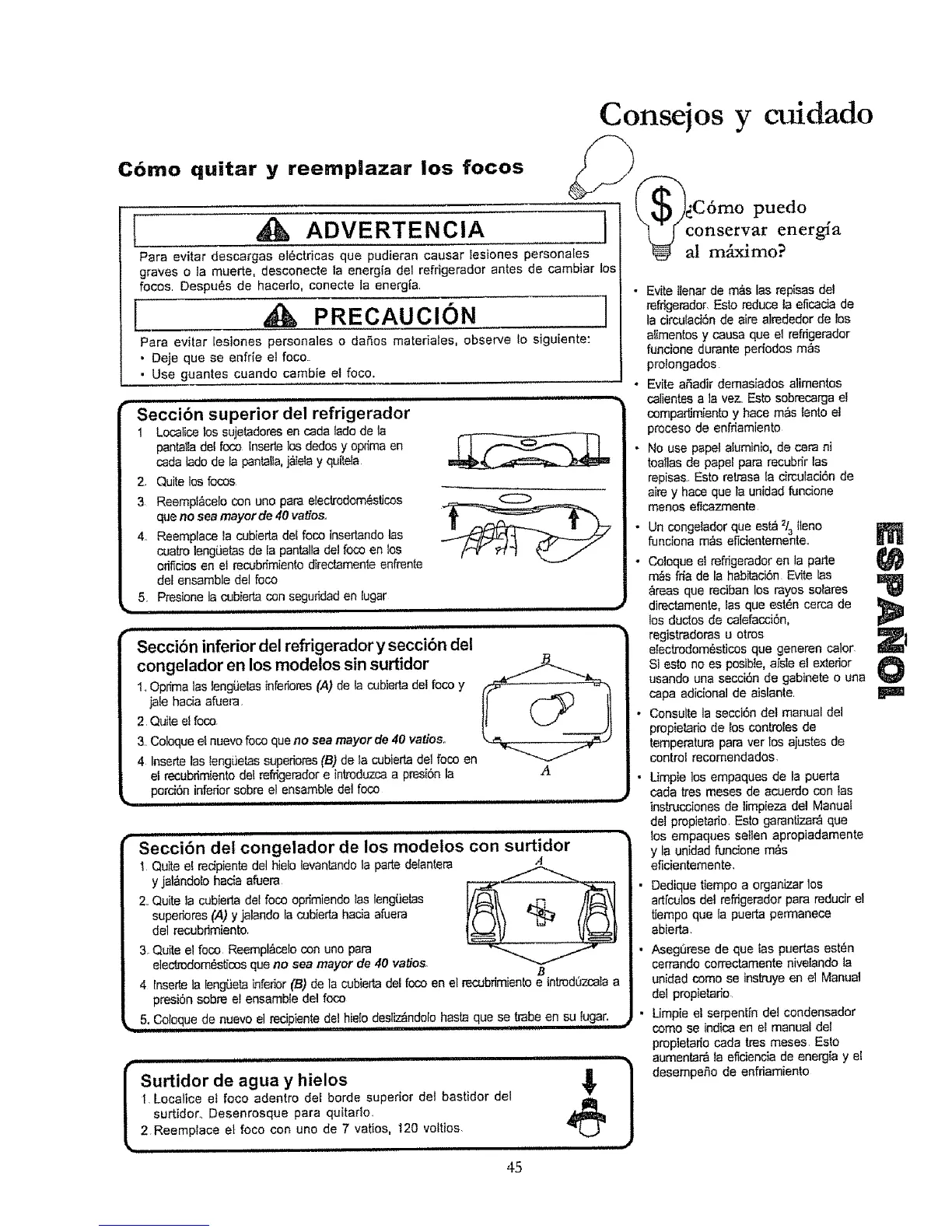 graves o Is muerte, desconecte la energia del refrigerador antes de cambiar los