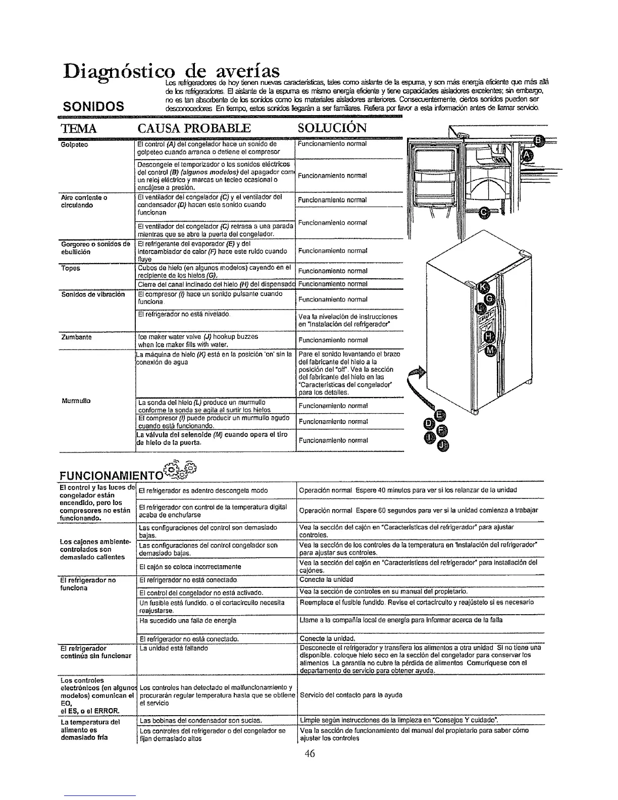 Gotpeteo El control (A) dei congeMdor hace un sonido de Funcionamlento normal