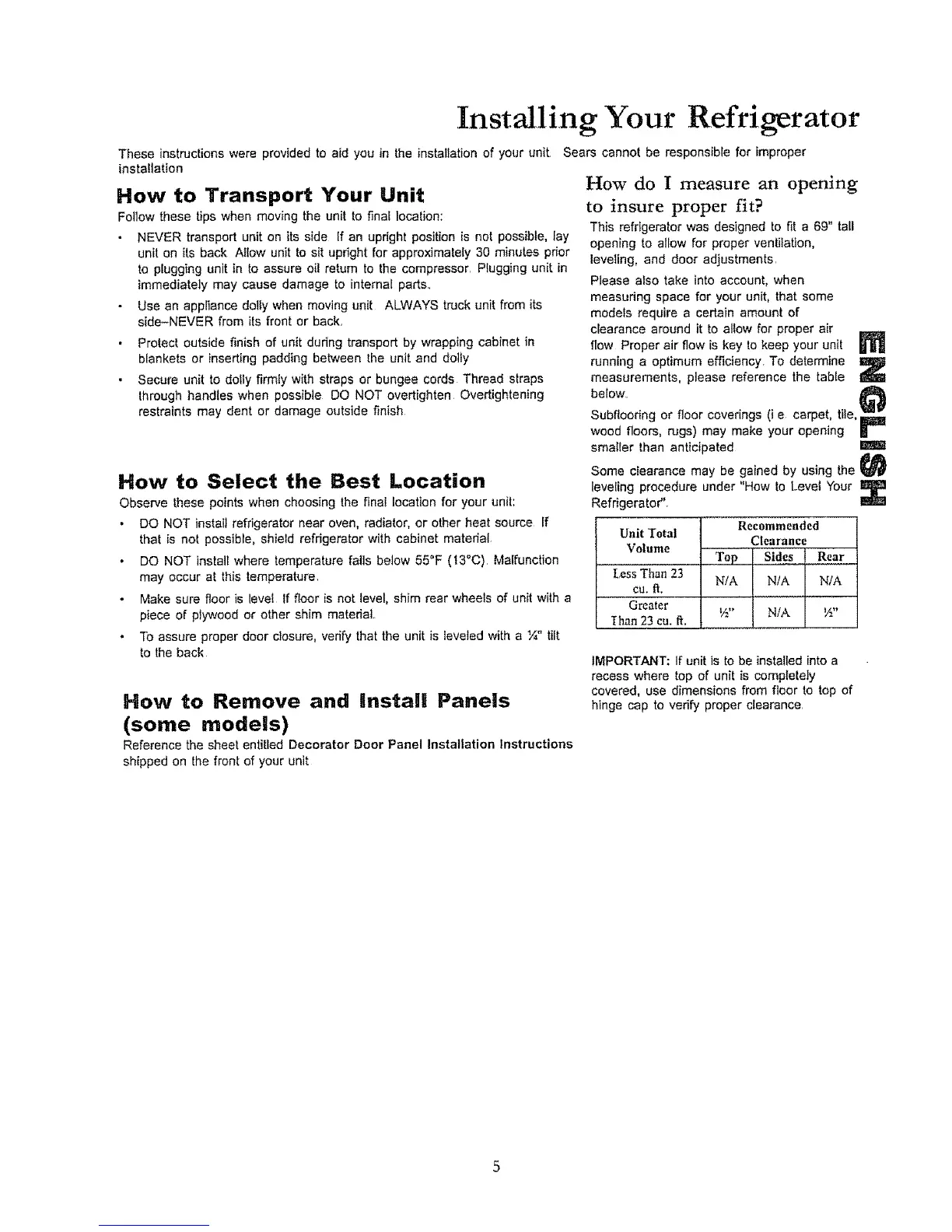 Installing Your Refrigerator