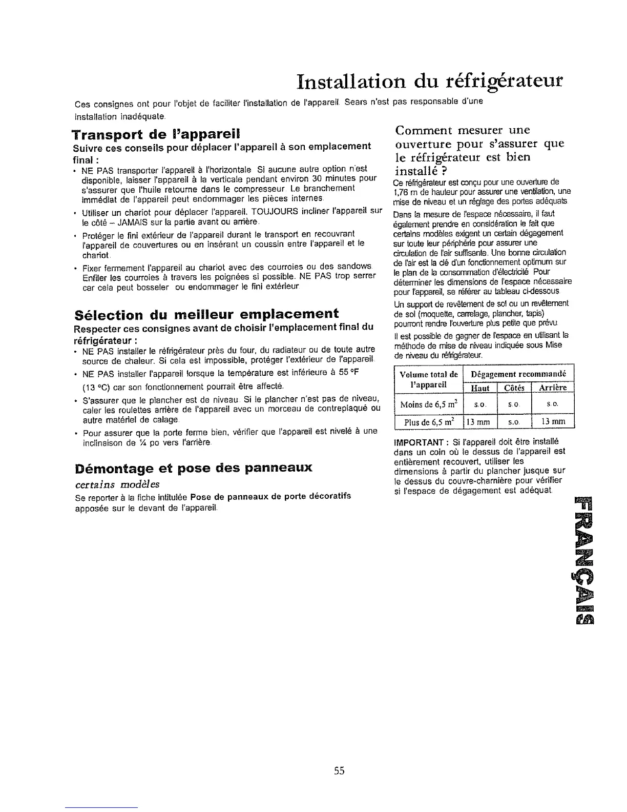 Ces consignes ont pour fobjet de facititer l'installafion de I'appareit Sears n'est pas responsabte d'une