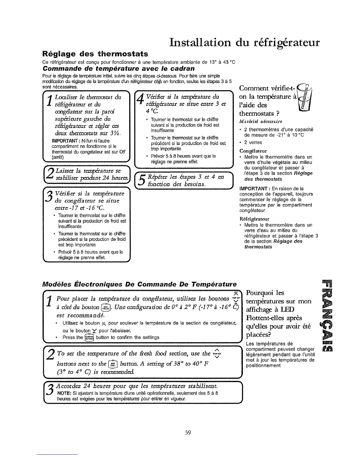 Ce refrigerateur est con_u pour fonctionner &une temperature ambiante de 13 ° & 43 °C
