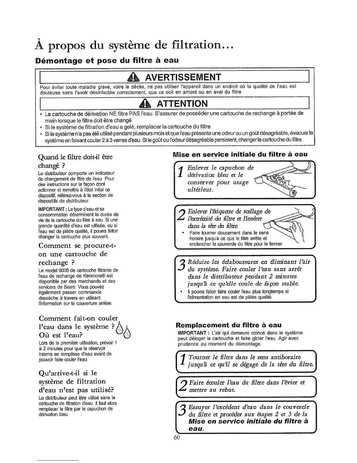 • La cartouche de d&ivafion NE filtre PAS I'eauoS'assurer de poss6der une cartouche de rechange & port_e de