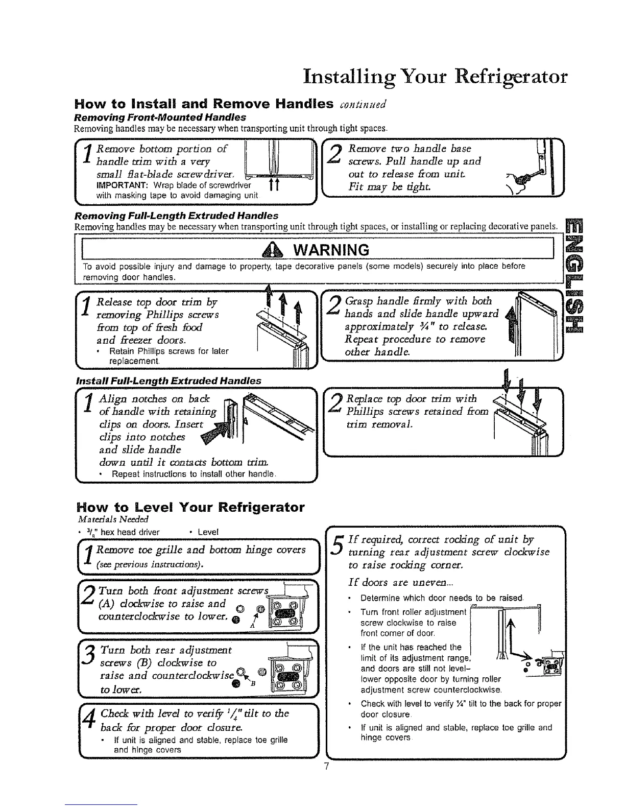 Removing handtes may be necessary when transporting unit through tight spaces, or installing or replacing decorative panels.