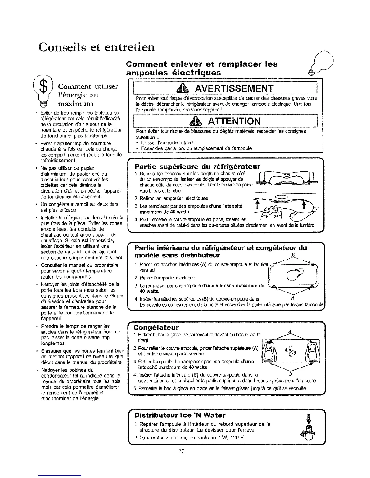 Ie d_c_s, debrancher le r_frtg6rateur avant de changer I'ampoule eleddque Une lois