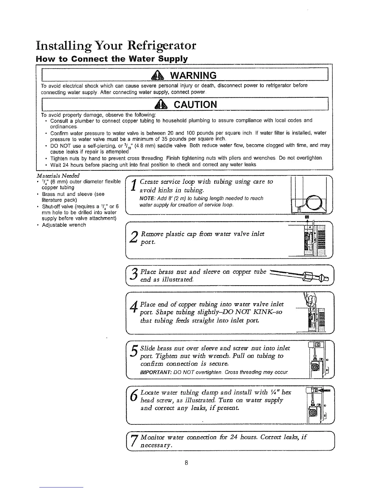 • Consult a plumber to connect copper tubing to household plumbing to assure compliance with local codes and