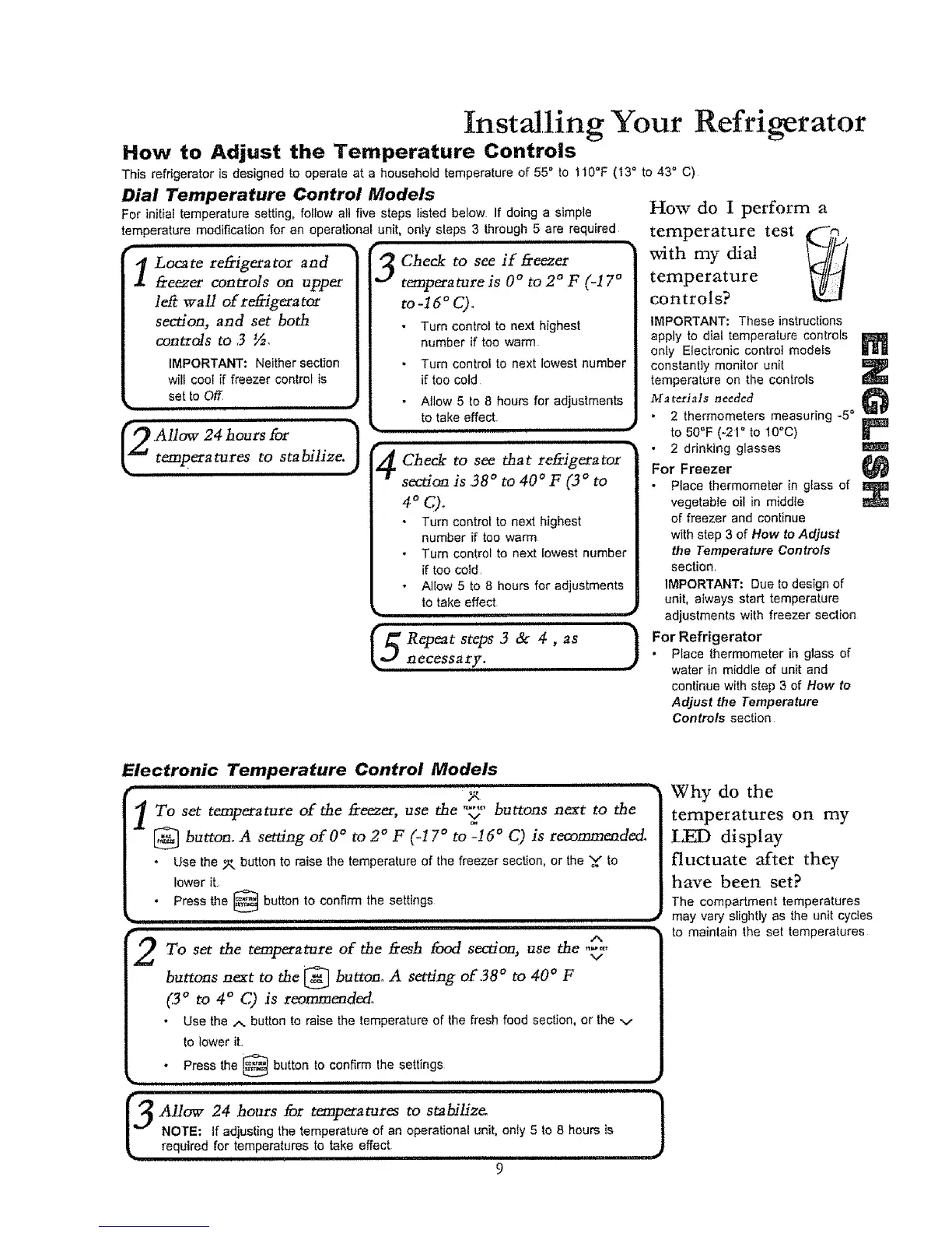 This refrigerator is designed to operate at a household temperature of 55 ° to 110°F (t3 ° to 43 ° C)