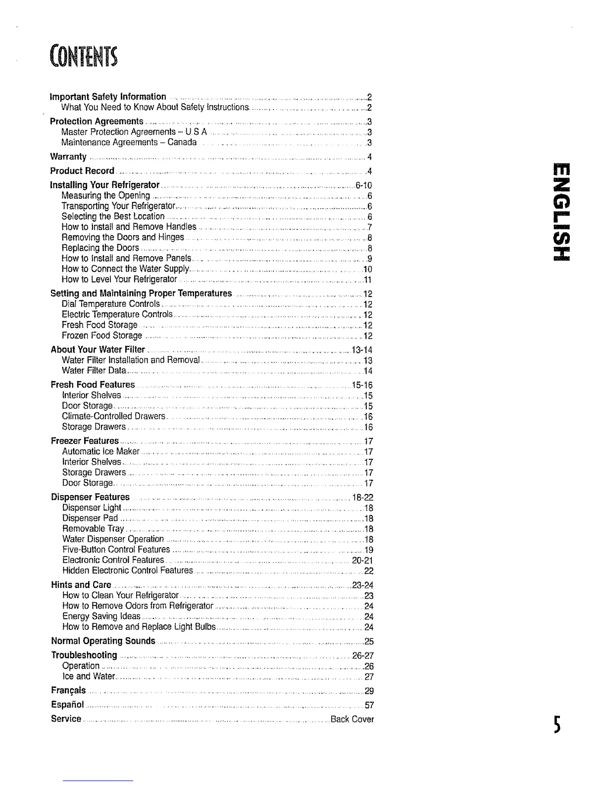 Water Filter Installationand Removal....................................................................13
