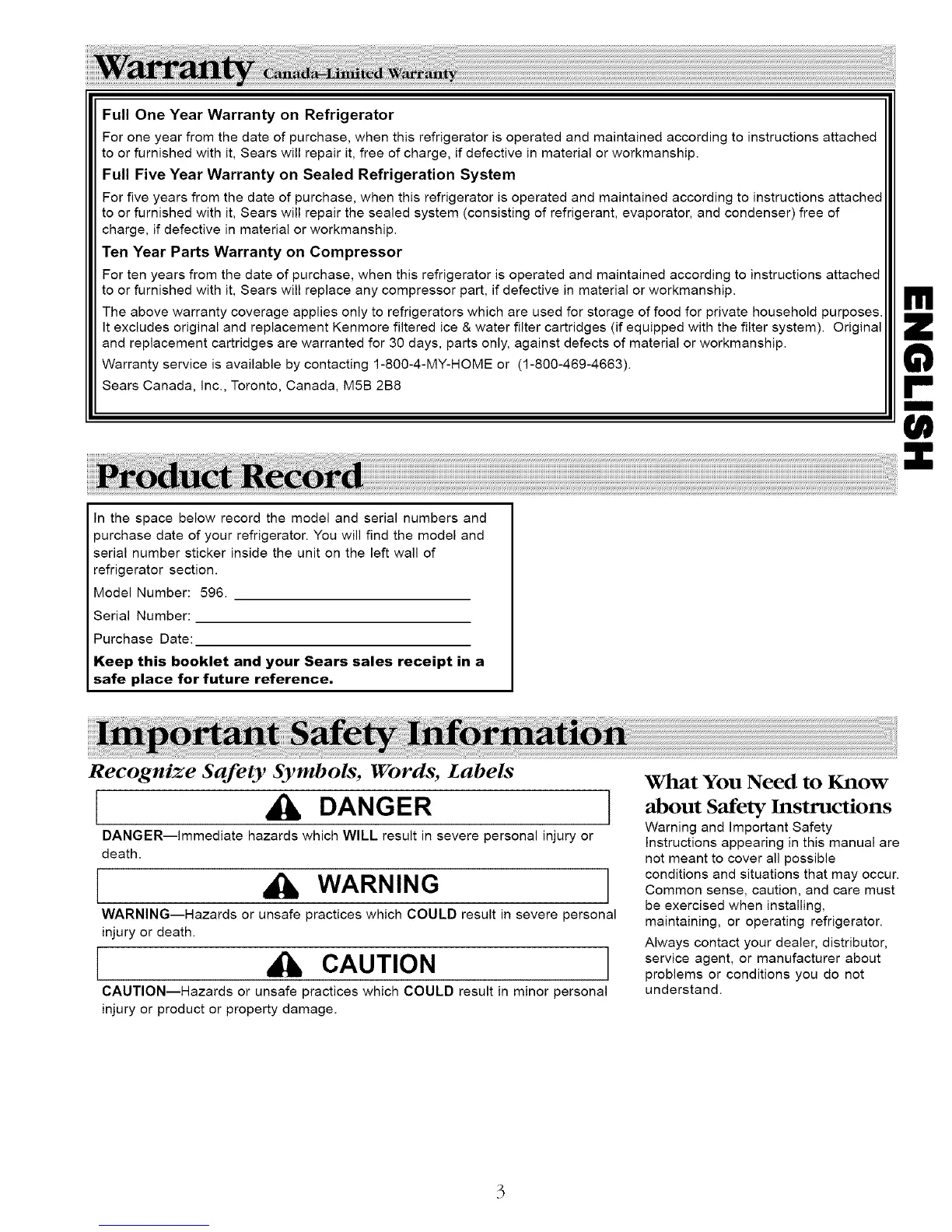 Keep this booklet and your Sears sales receipt in a