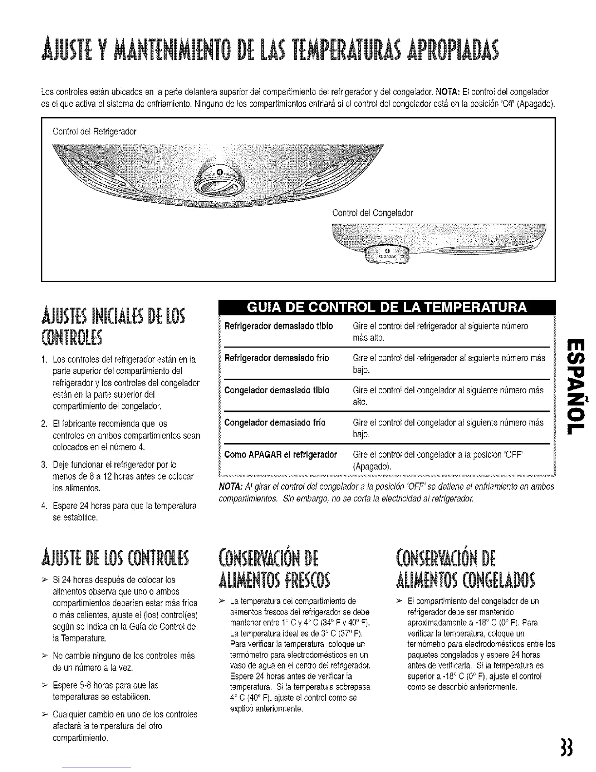 NOTA:AI girarel controlde/congeladora laposicidn'OFF'se detieneel enfriamientoenambos