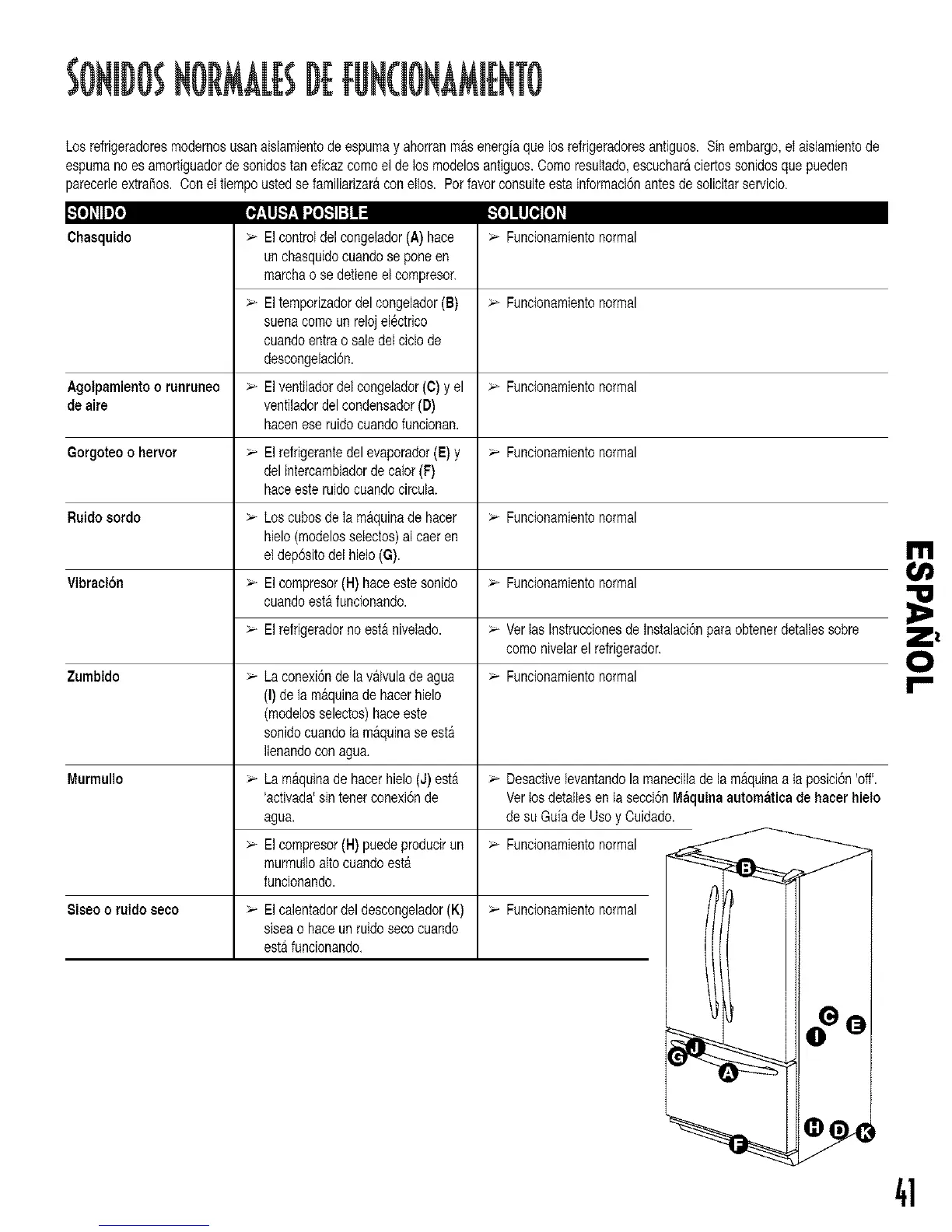 Agolpamientoo runruneo _ Elventiladordelcongelador(C)y el _ Funcionamientonormal