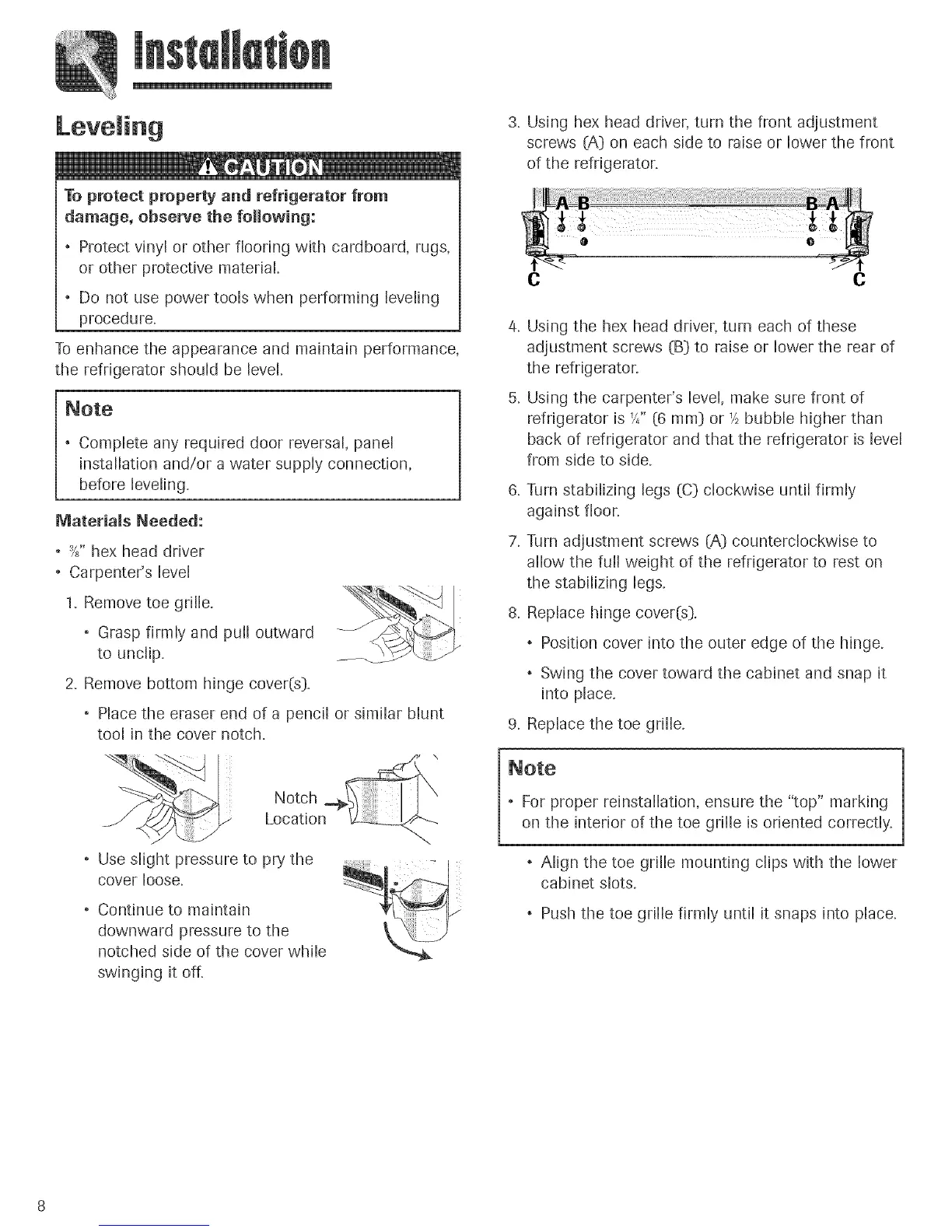 refrigerator is '/4" (6 ram} or '/_bubble higher than